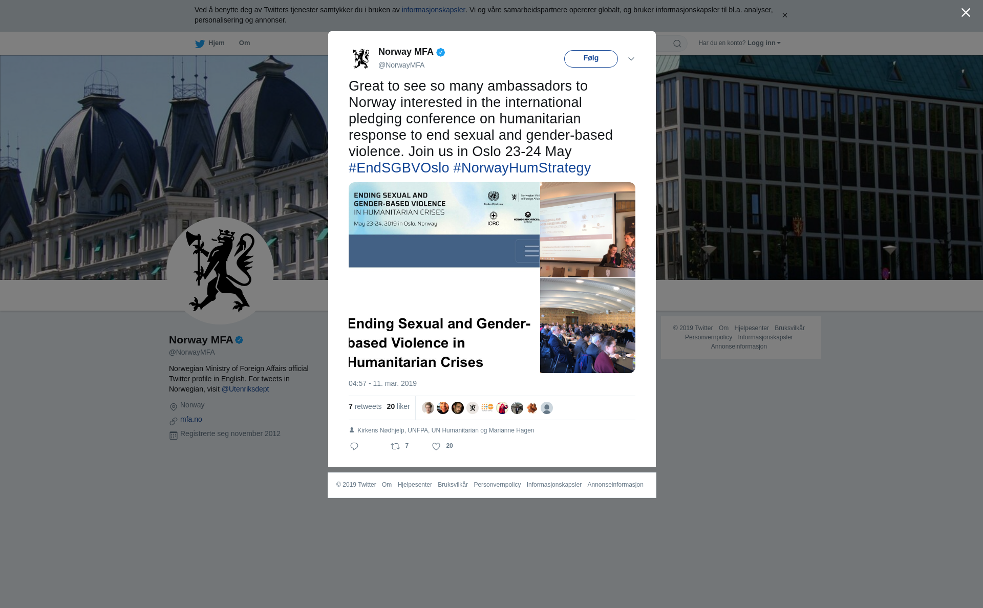 Great to see so many ambassadors to Norway interested in the international pledging conference on humanitarian response to end sexual and gender-based violence. Join us in Oslo 23-24 May #EndSGBVOslo #NorwayHumStrategy https://t.co/EZlO3IwljC