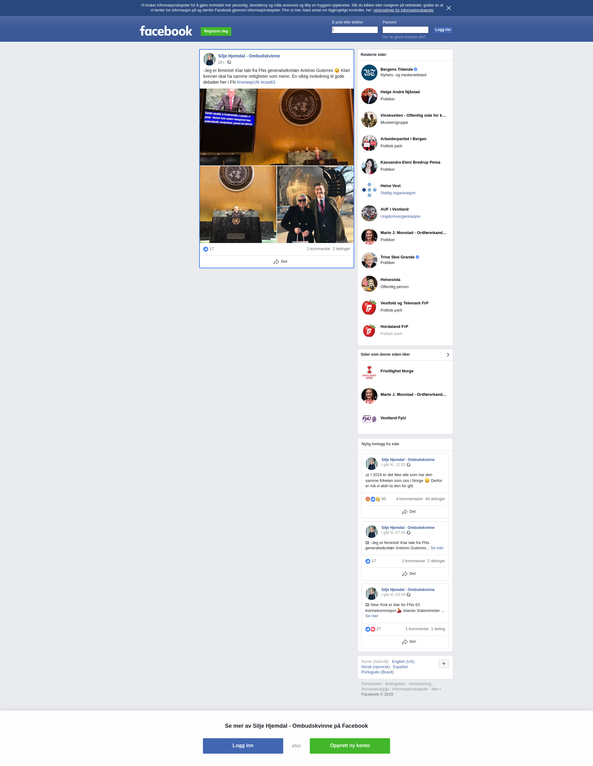 -Jeg er feminist! Klar tale fra FNs generalsekretær António Guterres 🙂 Klart kvinner skal ha samme rettigheter som menn. En viktig innledning til gode debatter her i FN #norwayUN #csw63