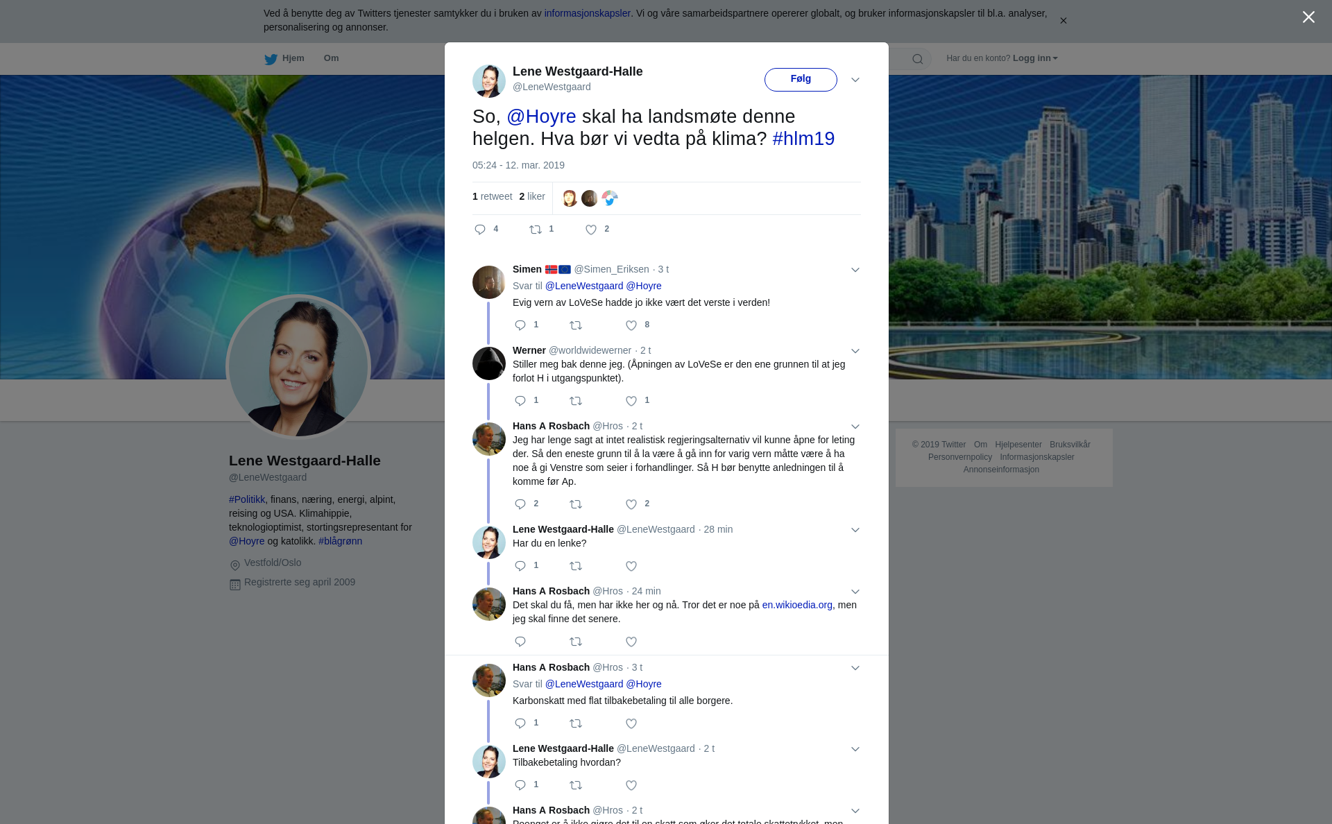 So, @Hoyre skal ha landsmøte denne helgen. Hva bør vi vedta på klima? #hlm19