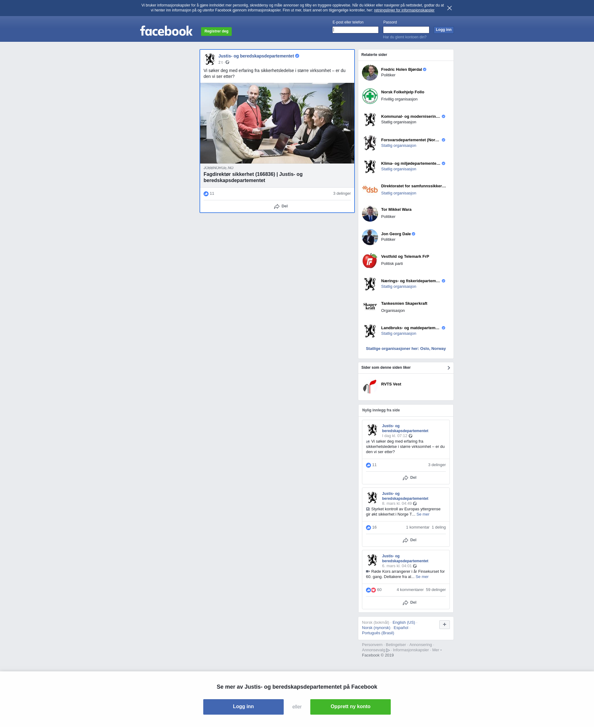 Stillingstittel: Fagdirektør sikkerhet (166836), Arbeidsgiver: Justis- og beredskapsdepartementet, Søknadsfrist: 31. mars 2019