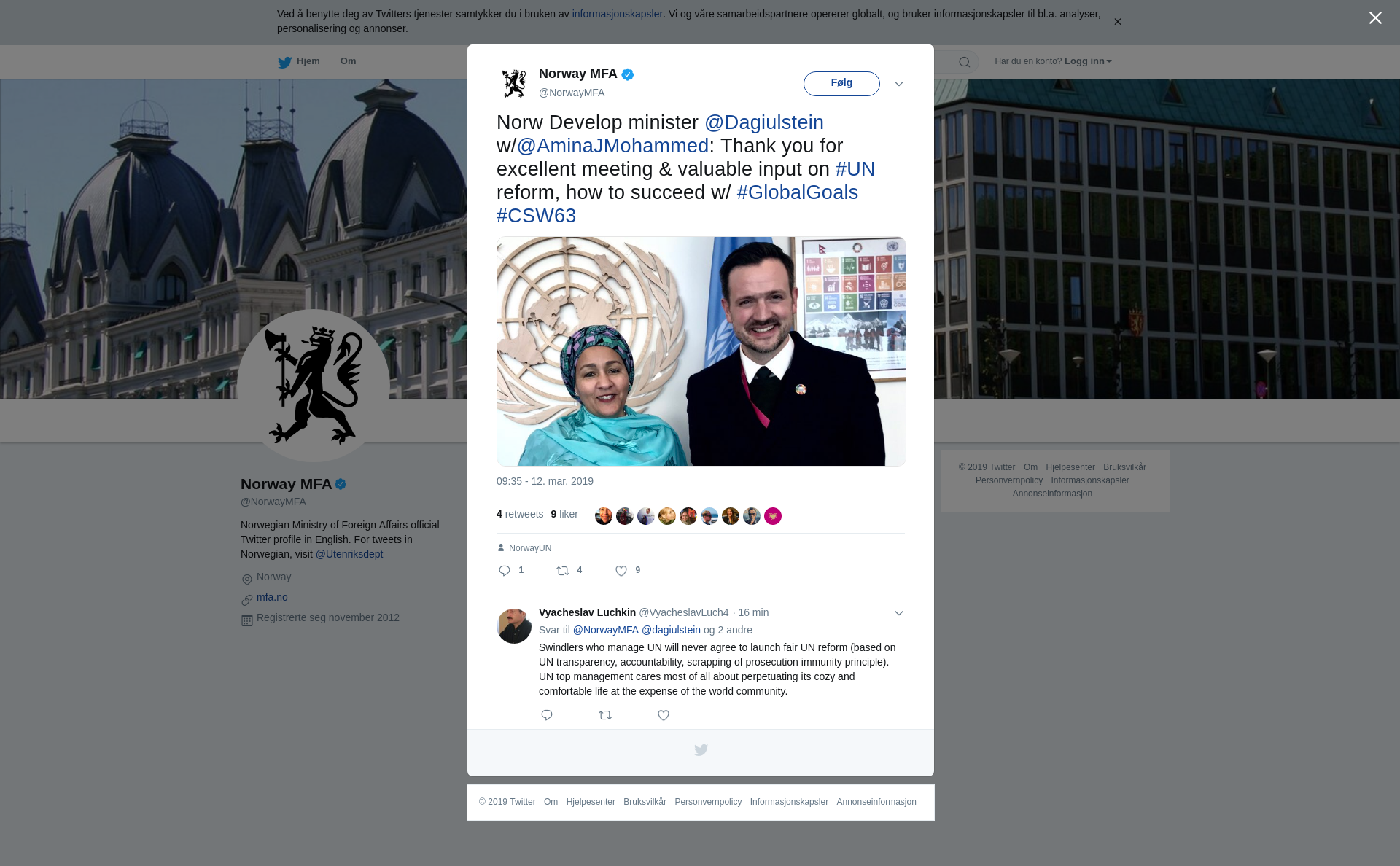 Norw Develop minister @Dagiulstein w/@AminaJMohammed: Thank you for excellent meeting & valuable input on #UN reform, how to succeed w/ #GlobalGoals #CSW63 https://t.co/vJMyZo5xDB