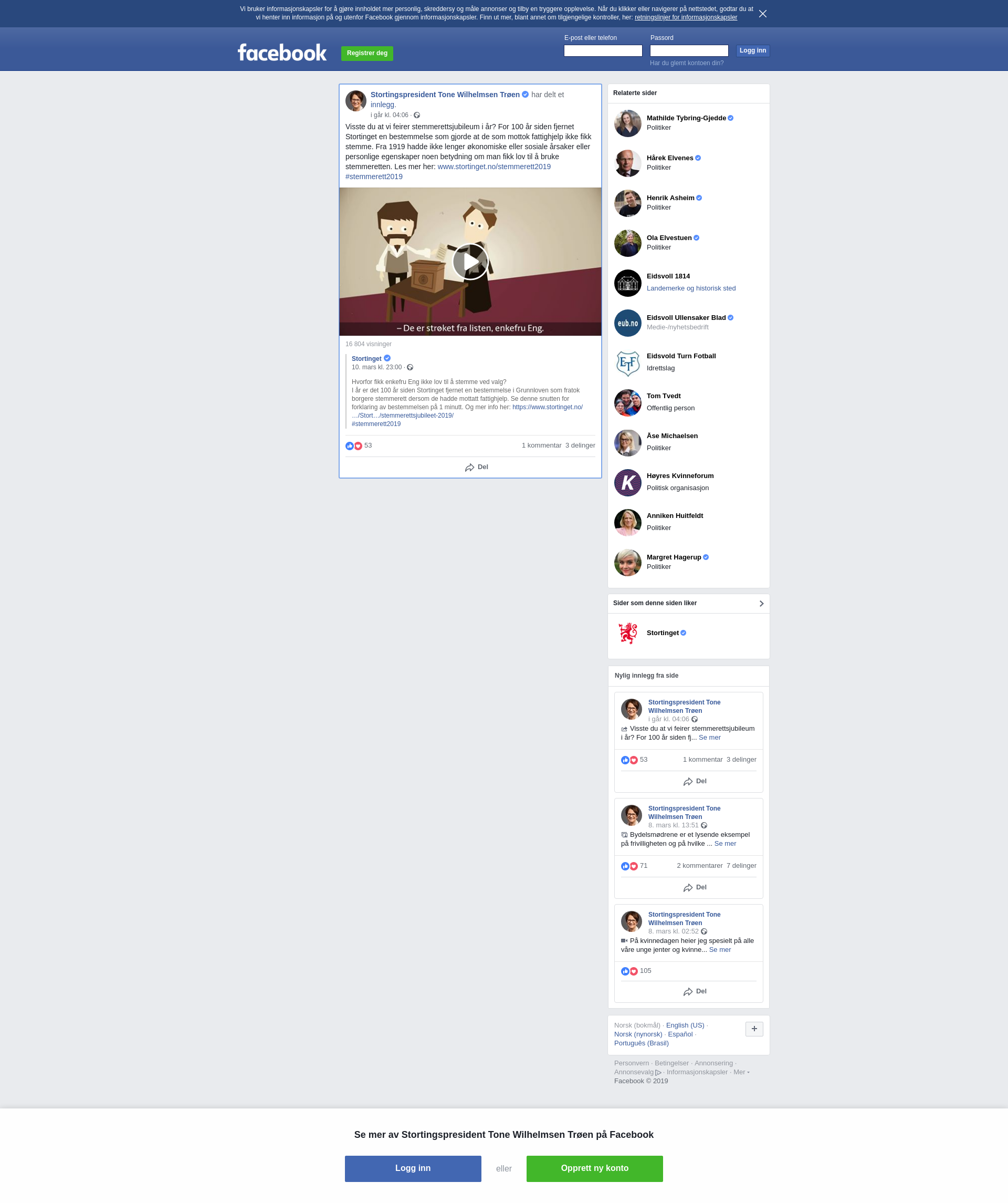 Visste du at vi feirer stemmerettsjubileum i år? For 100 år siden fjernet Stortinget en bestemmelse som gjorde at de som mottok fattighjelp ikke fikk stemme. Fra 1919 hadde ikke lenger økonomiske eller sosiale årsaker eller personlige egenskaper noen betydning om man fikk lov til å bruke stemmeretten. Les mer her: www.stortinget.no/stemmerett2019 #stemmerett2019