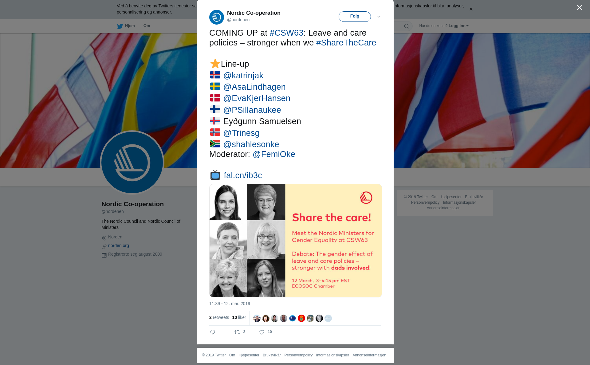 RT @nordenen: COMING UP at #CSW63: Leave and care policies – stronger when we #ShareTheCare ⭐Line-up 🇮🇸 @katrinjak 🇸🇪 @AsaLindhagen 🇩🇰…