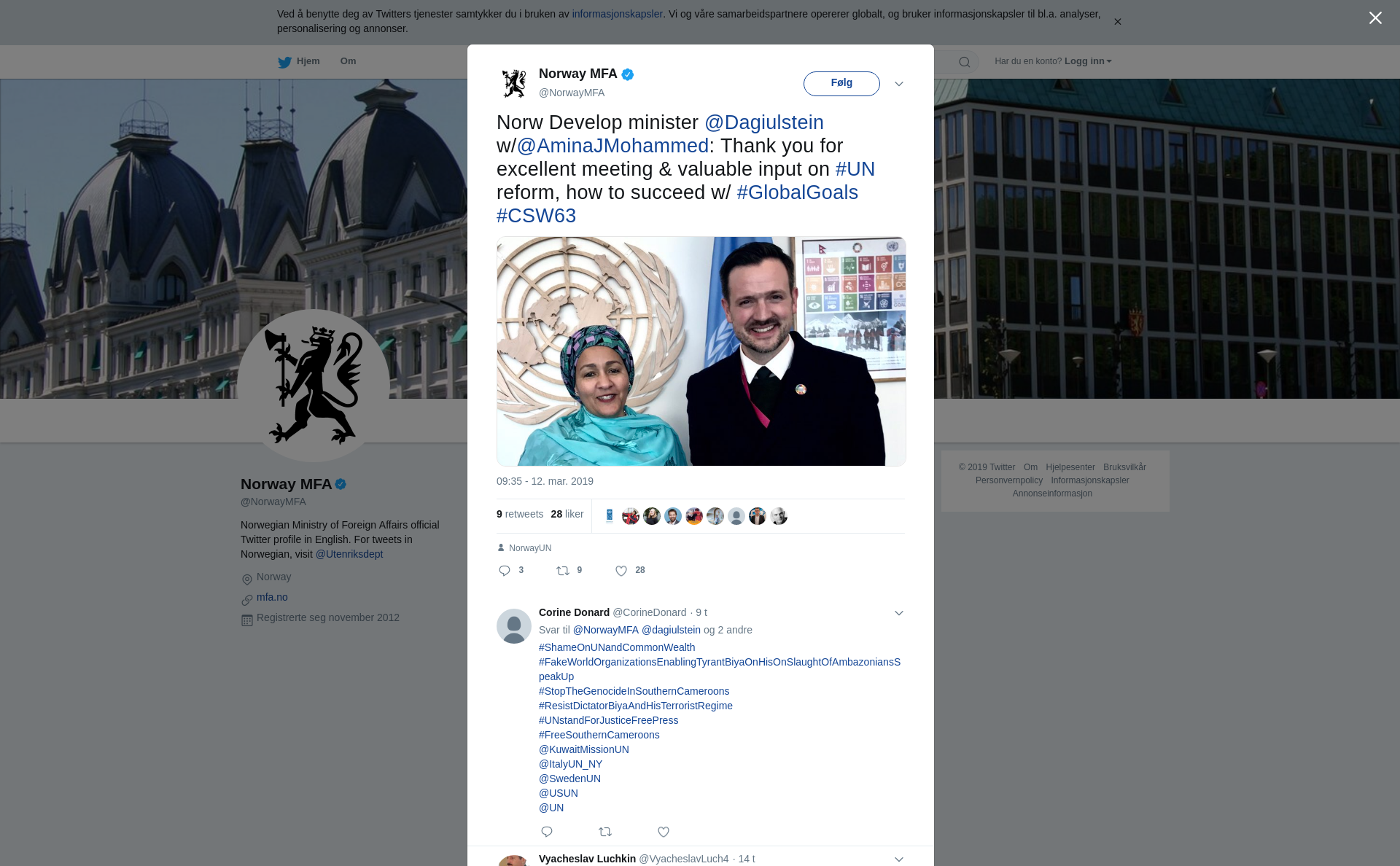 RT @NorwayMFA: Norw Develop minister @Dagiulstein w/@AminaJMohammed: Thank you for excellent meeting & valuable input on #UN reform, how to succeed w/ #GlobalGoals #CSW63 https://t.co/vJMyZo5xDB