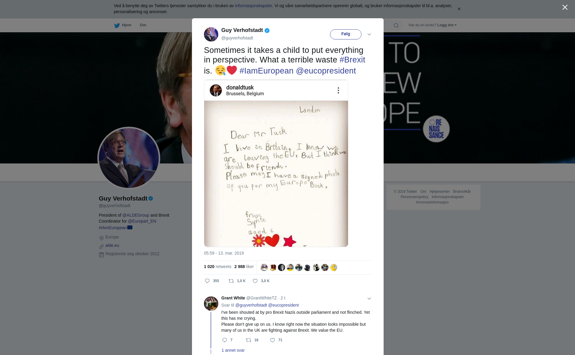 RT @guyverhofstadt: Sometimes it takes a child to put everything in perspective. What a terrible waste #Brexit is. 😪❤ #IamEuropean @eucopresident https://t.co/dIozxhjAKO