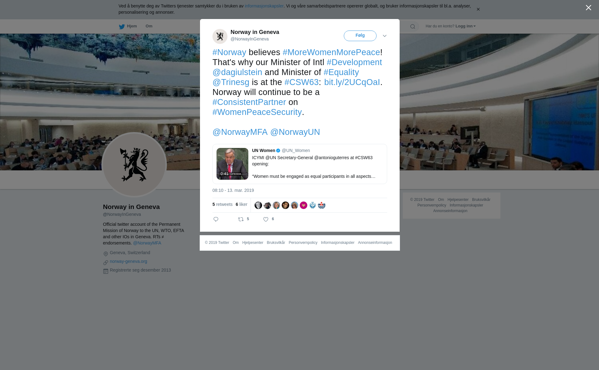 RT @NorwayInGeneva: #Norway believes #MoreWomenMorePeace! That's why our Minister of Intl #Development @dagiulstein and Minister of #Equality @Trinesg is at the #CSW63: https://t.co/EtN9qchRaK. Norway will continue to be a #ConsistentPartner on #WomenPeaceSecurity.
