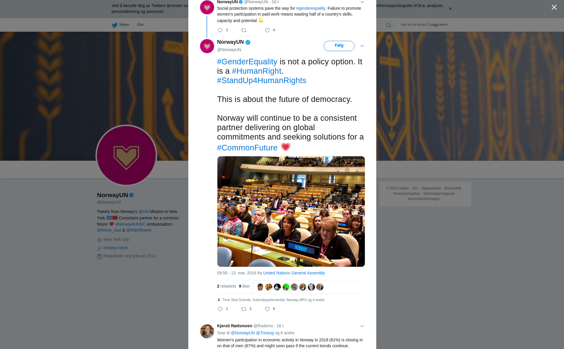 RT @NorwayUN: #GenderEquality is not a policy option. It is a #HumanRight. #StandUp4HumanRights This is about the future of democracy.…