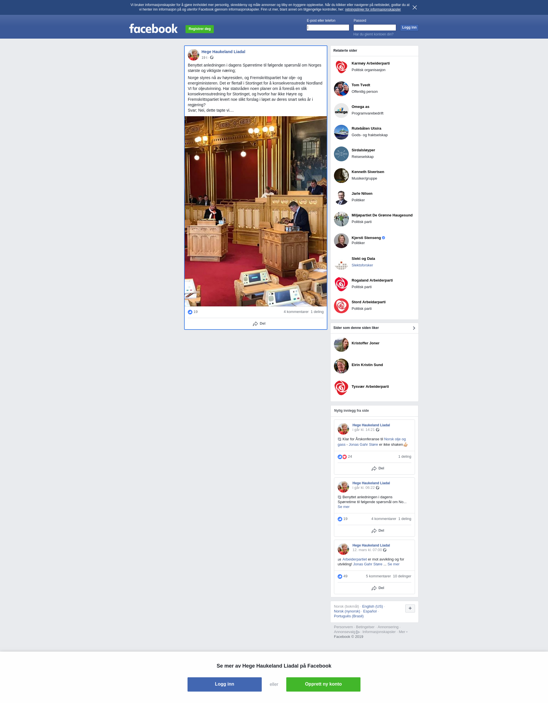 Benyttet anledningen i dagens Spørretime til følgende spørsmål om Norges største og viktigste næring;