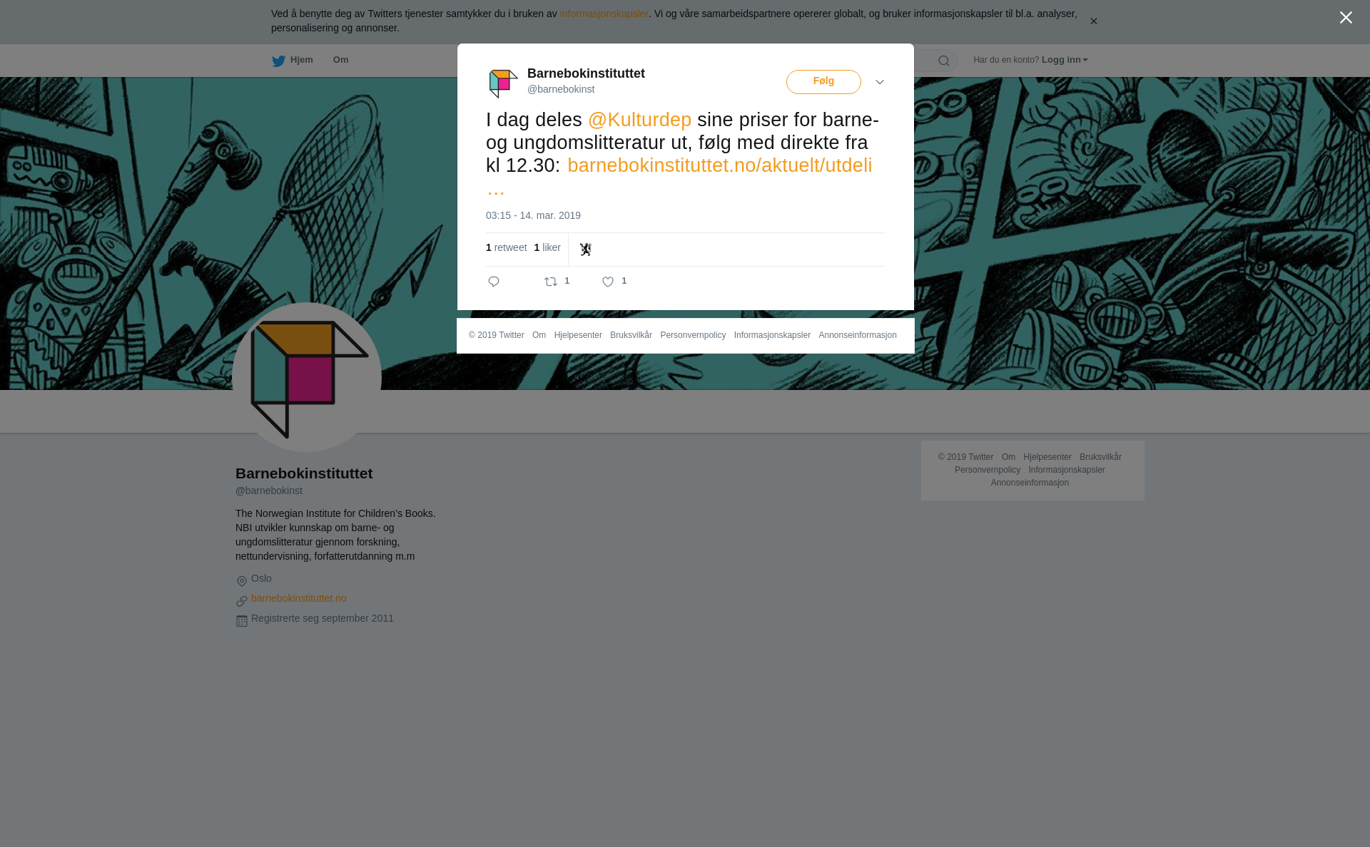 RT @barnebokinst: I dag deles @Kulturdep sine priser for barne- og ungdomslitteratur ut, følg med direkte fra kl 12.30: https://t.co/HEWo7ZkXEc