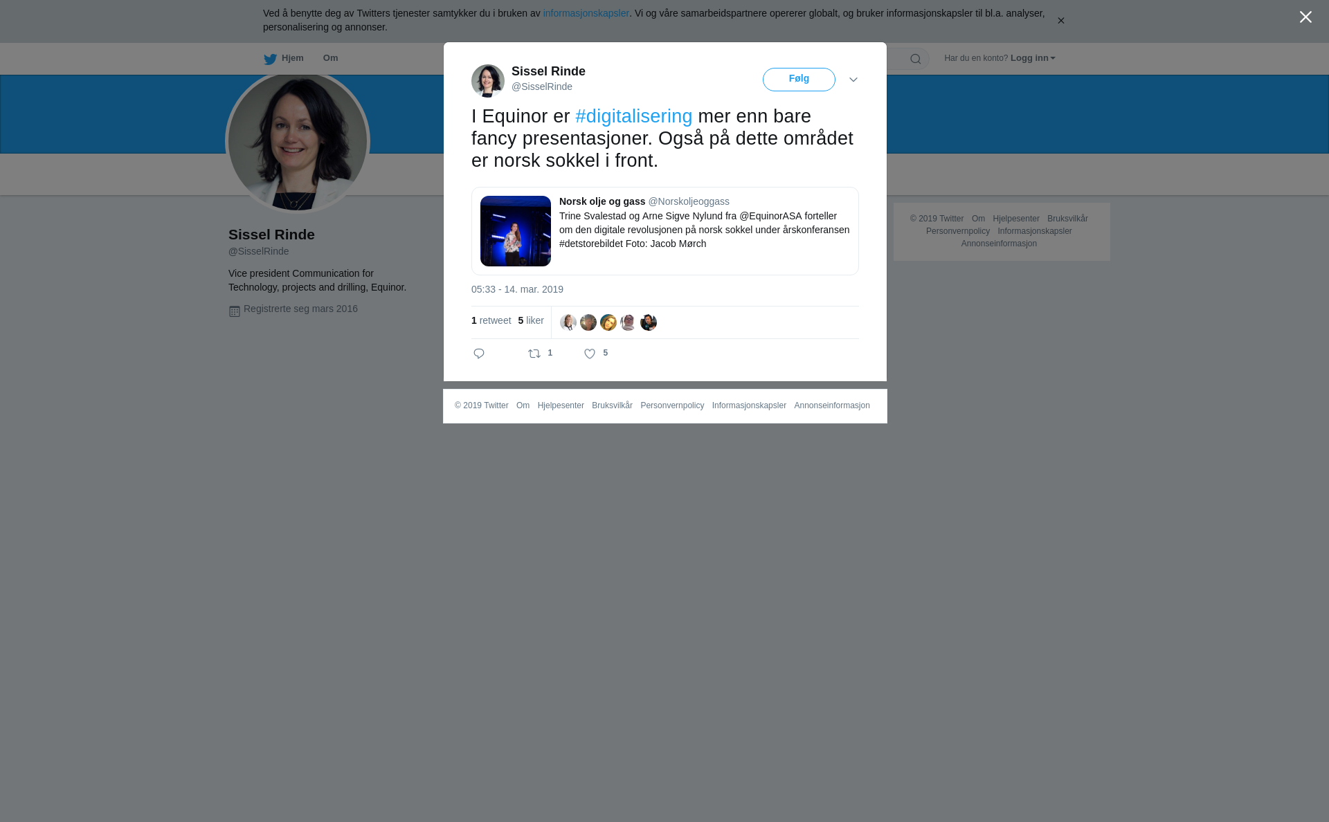 RT @SisselRinde: I Equinor er #digitalisering mer enn bare fancy presentasjoner. Også på dette området er norsk sokkel i front. https://t.co/2LrKIoLBdb