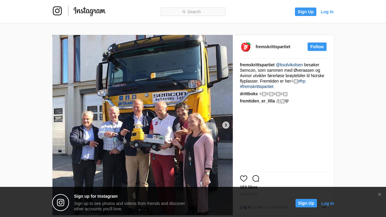 @ksolvikolsen besøker Semcon, som sammen med Øveraasen og Avinor utvikler førerløse brøytebiler til Norske flyplasser. Fremtiden er her👍🏻#frp #fremskrittspartiet