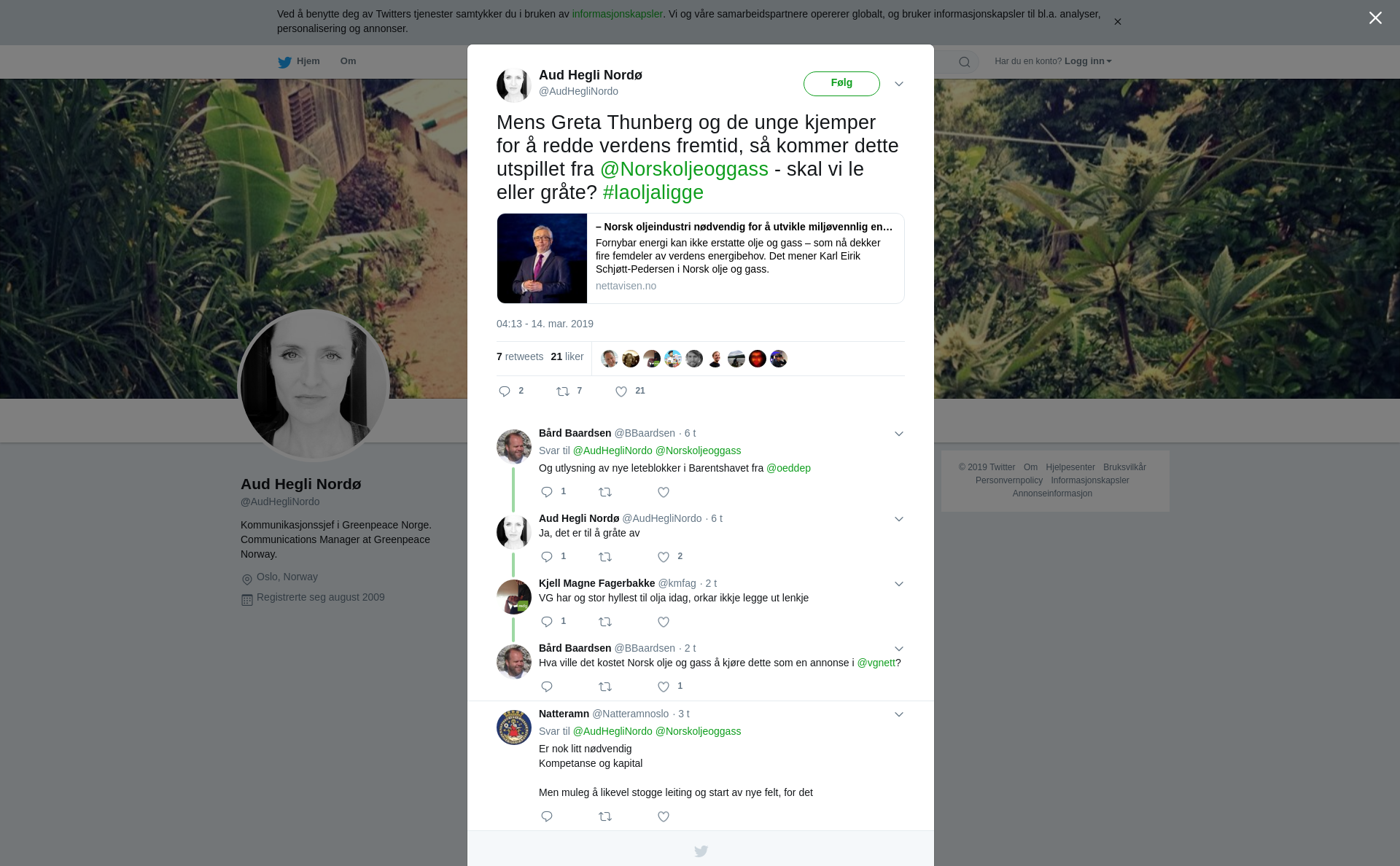 RT @AudHegliNordo: Mens Greta Thunberg og de unge kjemper for å redde verdens fremtid, så kommer dette utspillet fra @Norskoljeoggass - skal vi le eller gråte? #laoljaligge https://t.co/EitFpiixzH