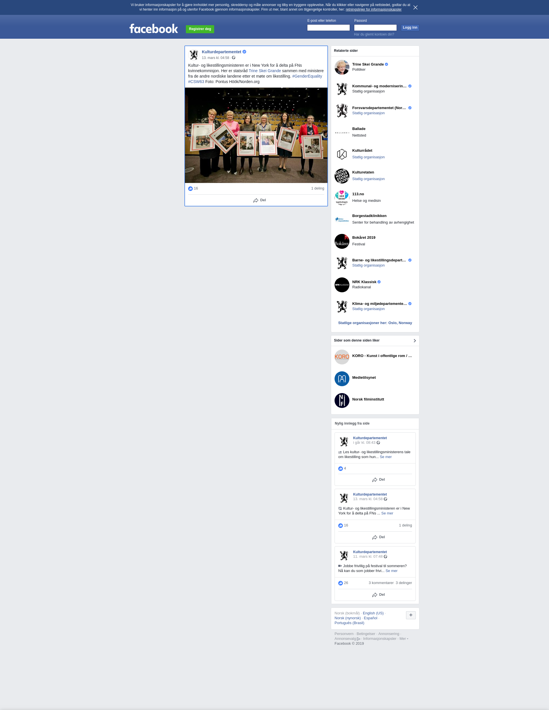 Kultur- og likestillingsministeren er i New York for å delta på FNs kvinnekommisjon. Her er statsråd Trine Skei Grande sammen med ministere fra de andre nordiske landene etter et møte om likestilling. #GenderEquality #CSW63 Foto: Pontus Höök/Norden.org