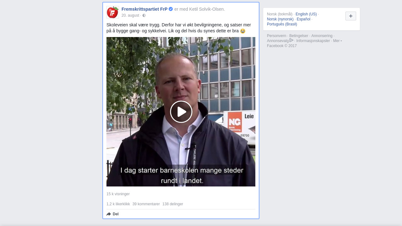 Skoleveien skal være trygg. Derfor har vi økt bevilgningene, og satser mer på å bygge gang- og sykkelvei. Lik og del hvis du synes dette er bra 😀