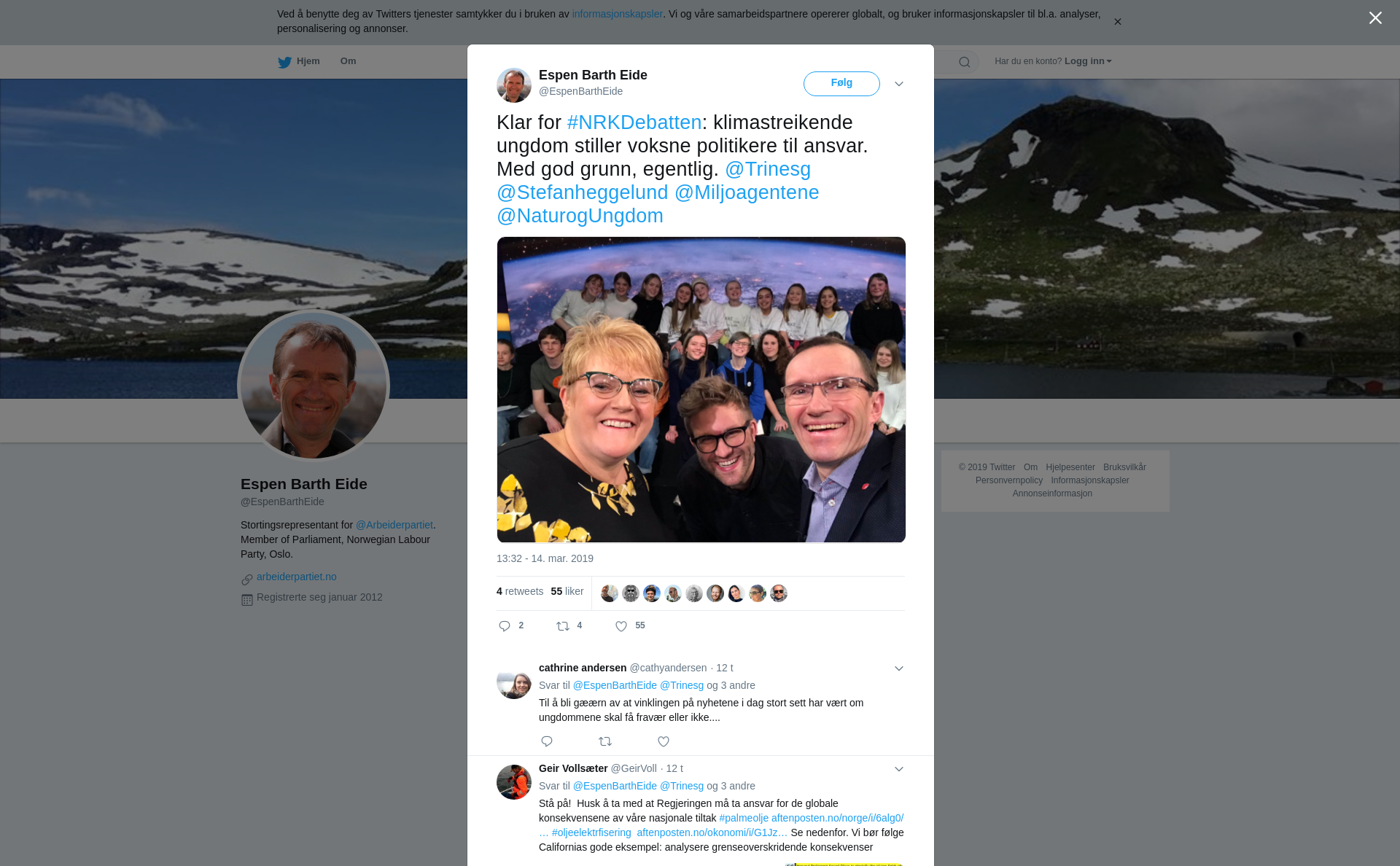 Klar for #NRKDebatten: klimastreikende ungdom stiller voksne politikere til ansvar. Med god grunn, egentlig. @Trinesg @Stefanheggelund @Miljoagentene @NaturogUngdom https://t.co/yddcb0nHjg