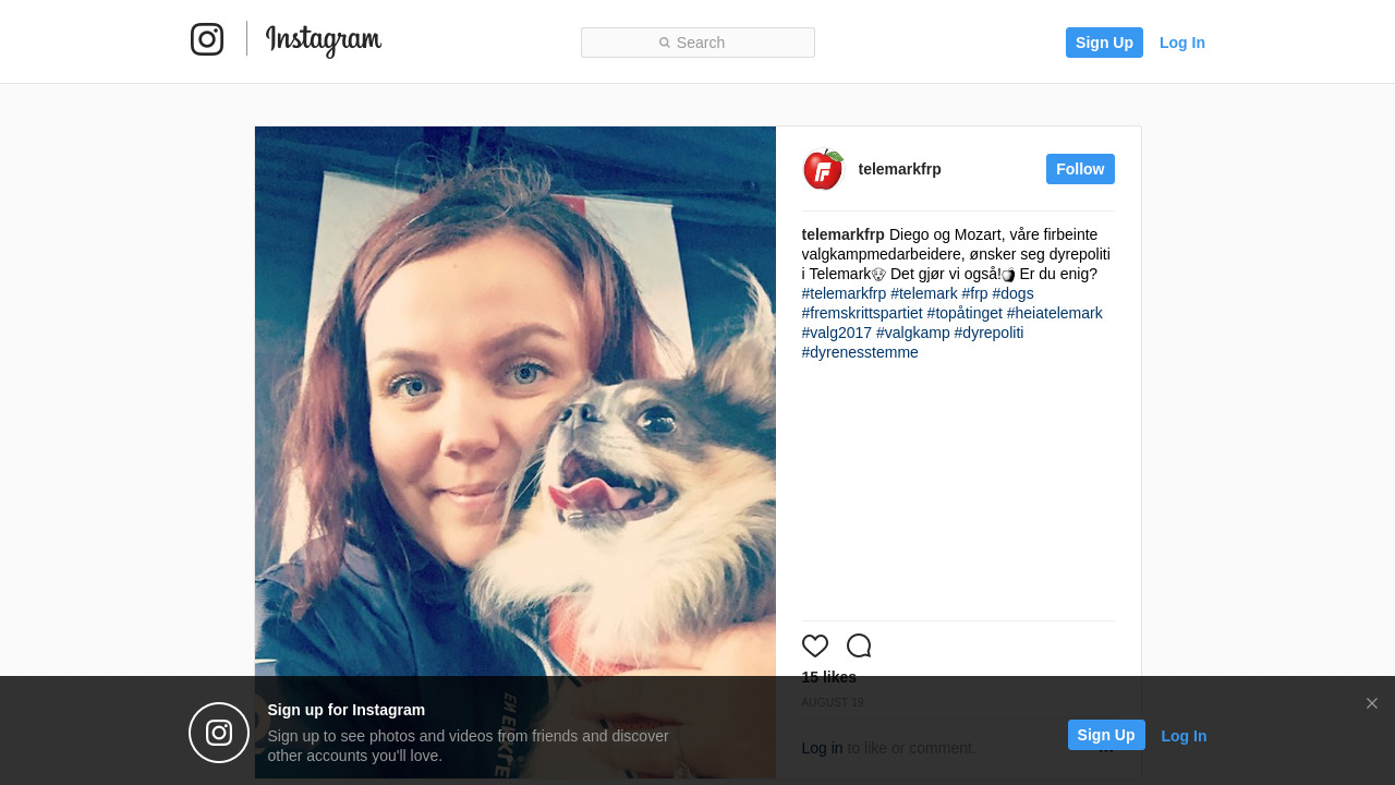 Diego og Mozart, våre firbeinte valgkampmedarbeidere, ønsker seg dyrepoliti i Telemark🐶 Det gjør vi også!🍎 Er du enig? #telemarkfrp #telemark #frp #dogs #fremskrittspartiet #topåtinget #heiatelemark #valg2017 #valgkamp #dyrepoliti #dyrenesstemme