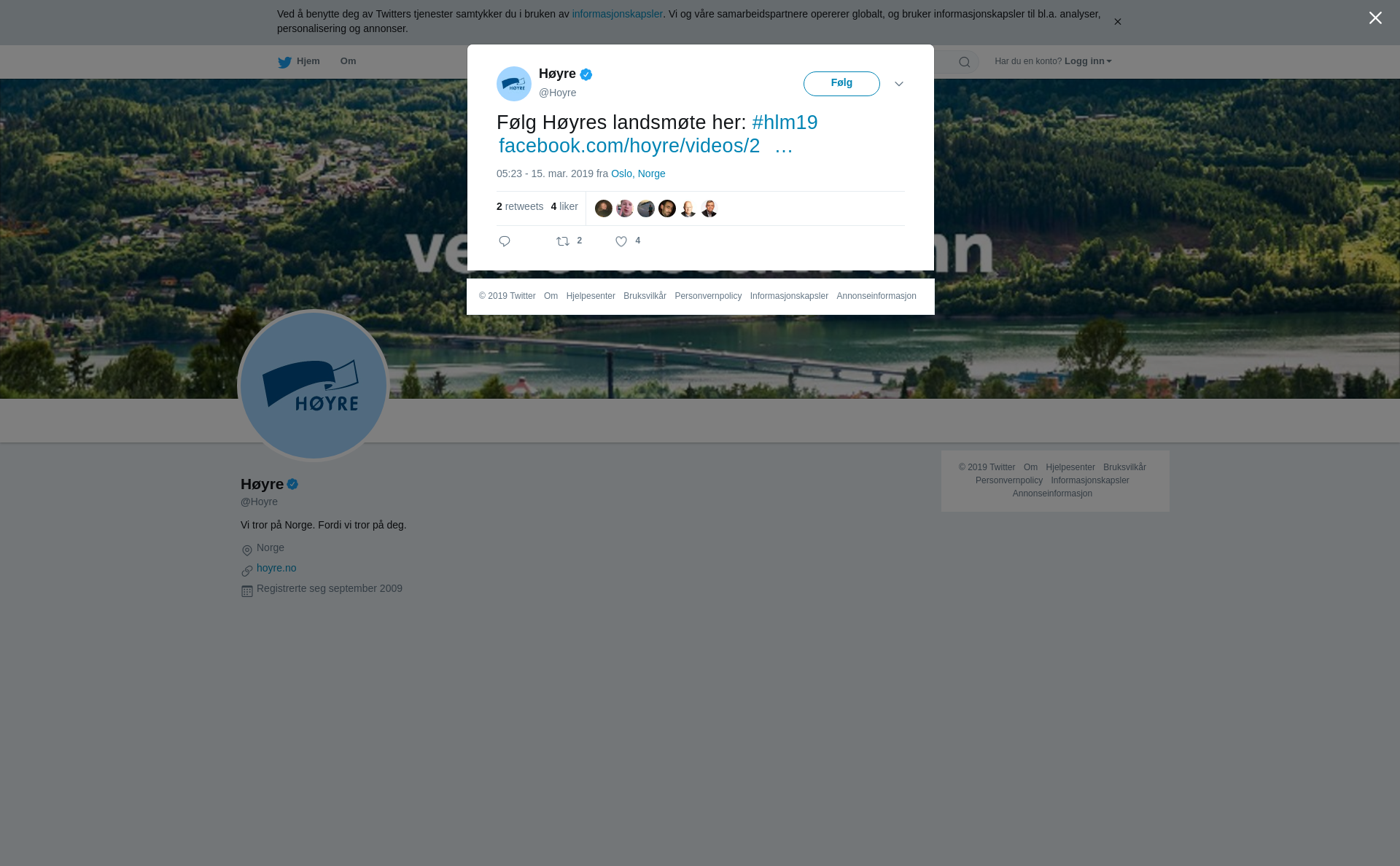 Følg Høyres landsmøte her: #hlm19 https://t.co/aVk9I4WgBw