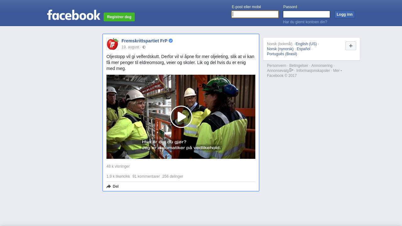 Oljestopp vil gi velferdskutt. Derfor vil vi åpne for mer oljeleting, slik at vi kan få mer penger til eldreomsorg, veier og skoler. Lik og del hvis du er enig med meg.