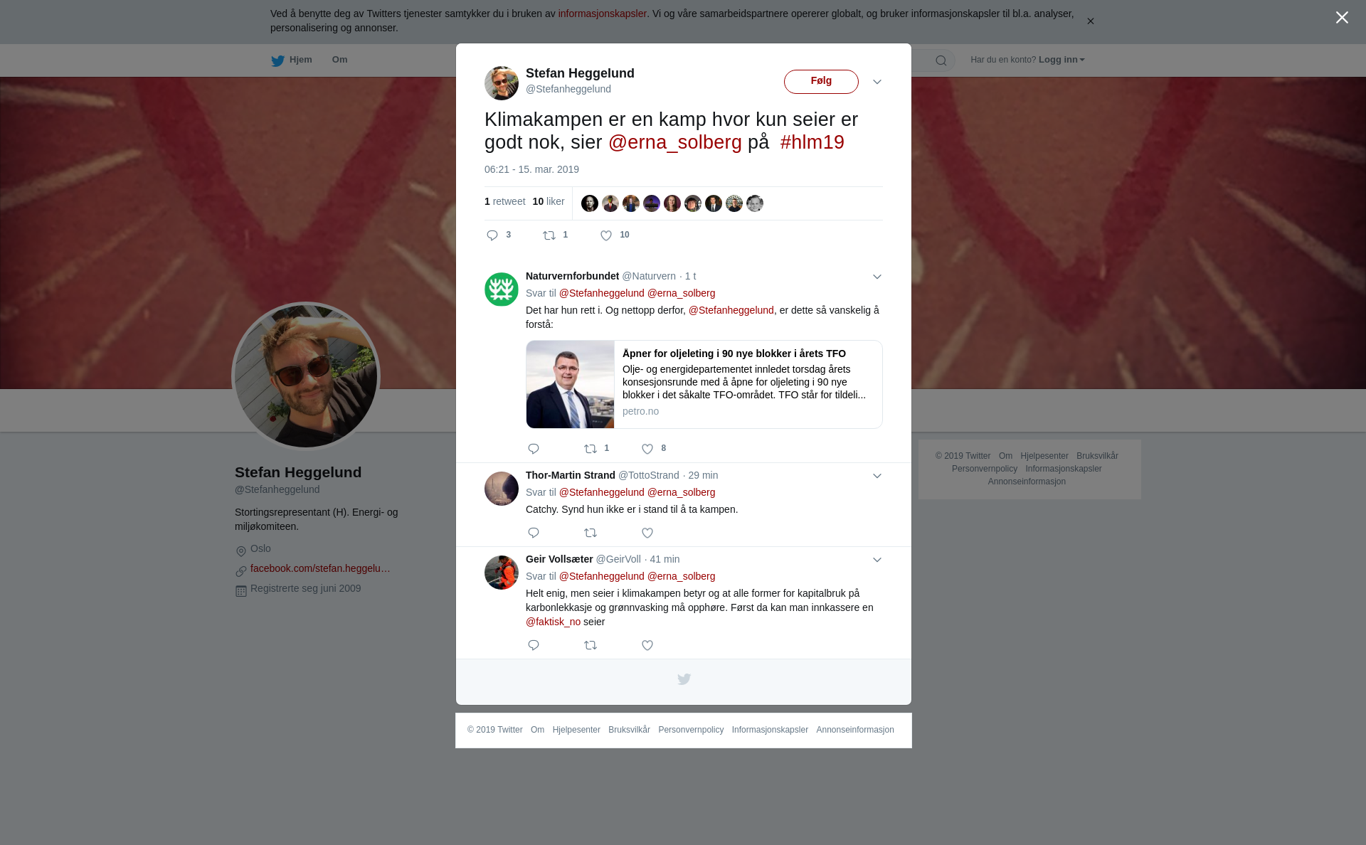 Klimakampen er en kamp hvor kun seier er godt nok, sier @erna_solberg på #hlm19
