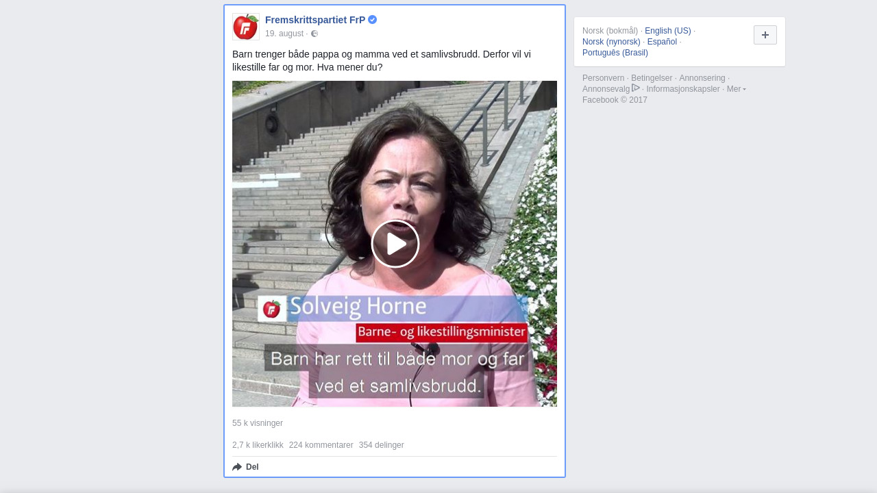 Barn trenger både pappa og mamma ved et samlivsbrudd. Derfor vil vi likestille far og mor. Hva mener du?