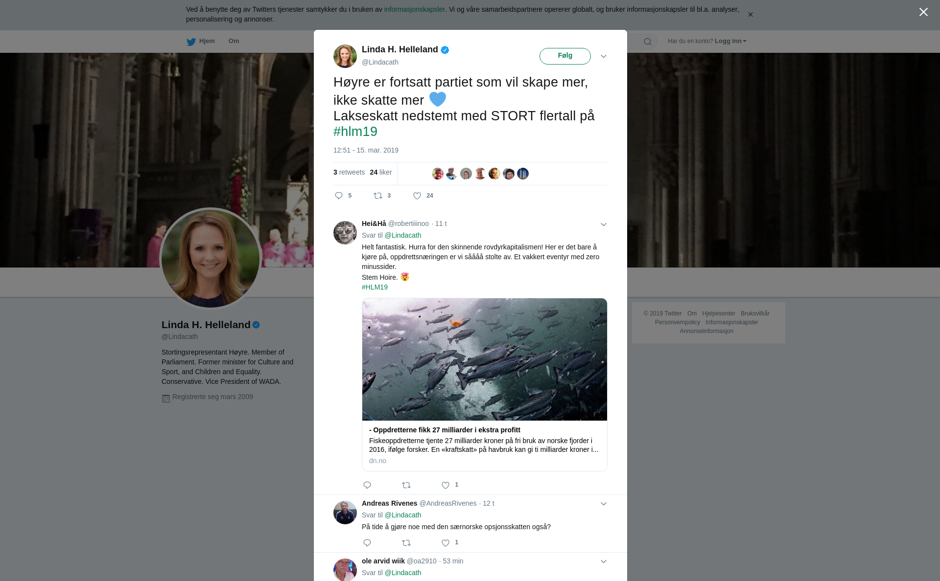 Høyre er fortsatt partiet som vil skape mer, ikke skatte mer 💙 Lakseskatt nedstemt med STORT flertall på #hlm19