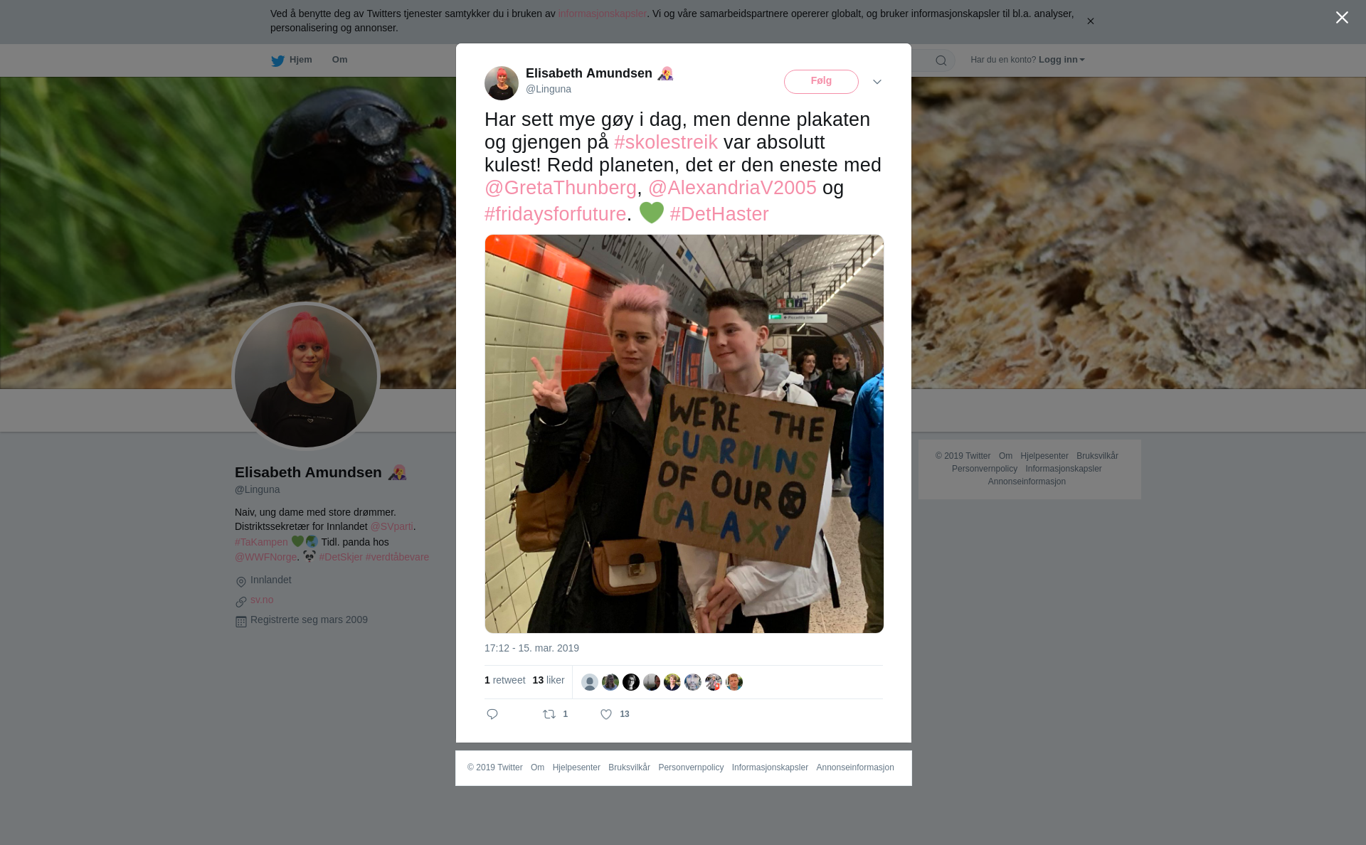 RT @Linguna: Har sett mye gøy i dag, men denne plakaten og gjengen på #skolestreik var absolutt kulest! Redd planeten, det er den eneste med @GretaThunberg, @AlexandriaV2005 og  #fridaysforfuture. 💚 #DetHaster https://t.co/PvBA3JoO5M