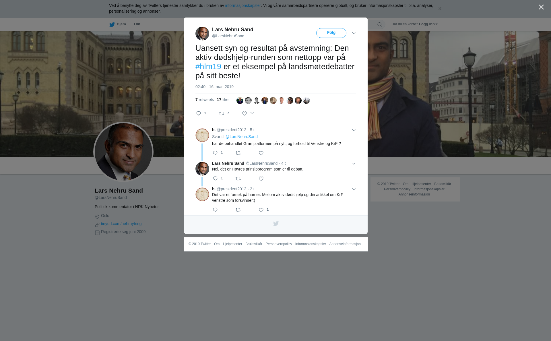 RT @LarsNehruSand: Uansett syn og resultat på avstemning: Den aktiv dødshjelp-runden som nettopp var på #hlm19 er et eksempel på landsmøtedebatter på sitt beste!