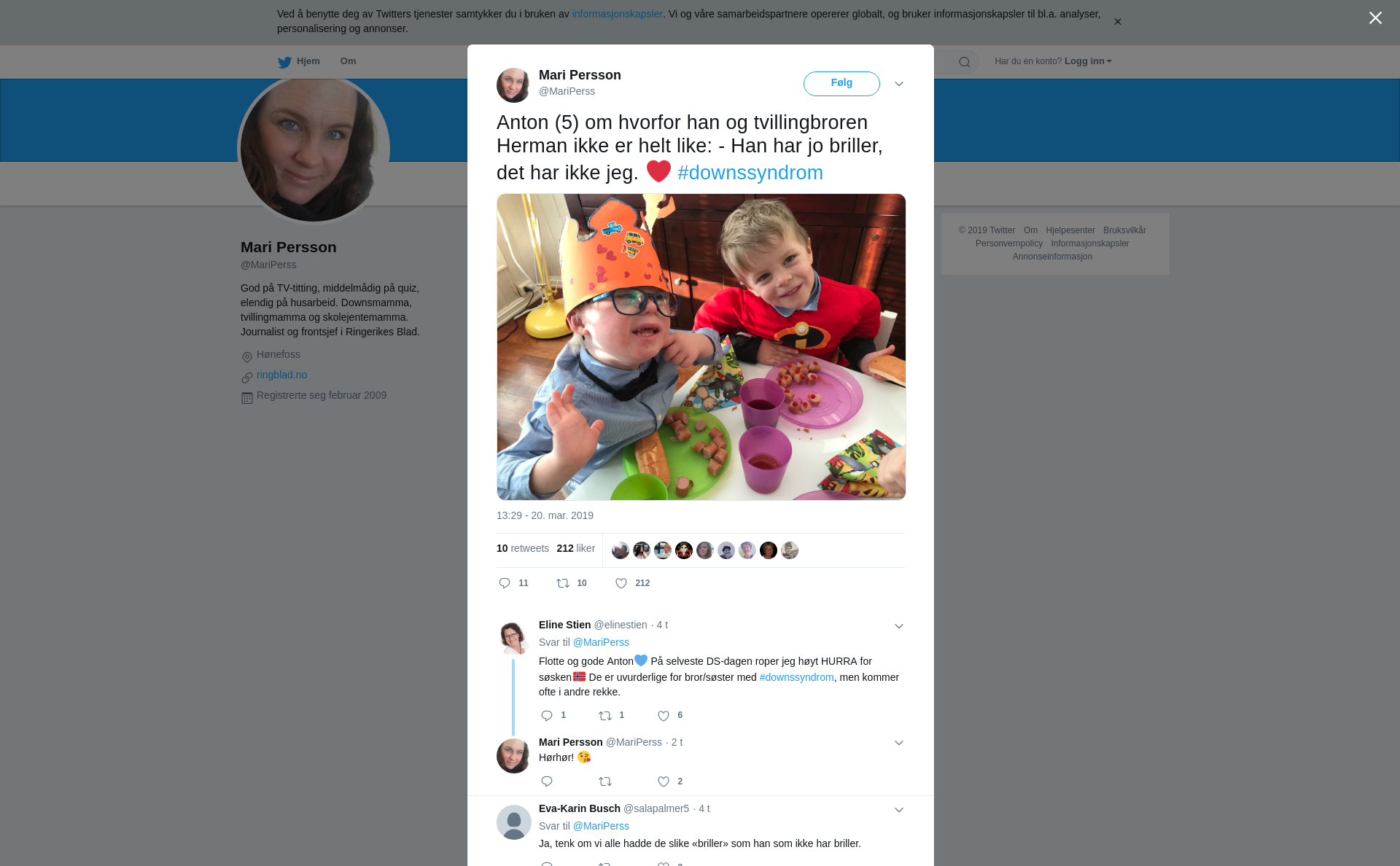 RT @MariPerss: Anton (5) om hvorfor han og tvillingbroren Herman ikke er helt like: - Han har jo briller, det har ikke jeg. ❤️ #downssyndrom https://t.co/vjGRA9RCbV