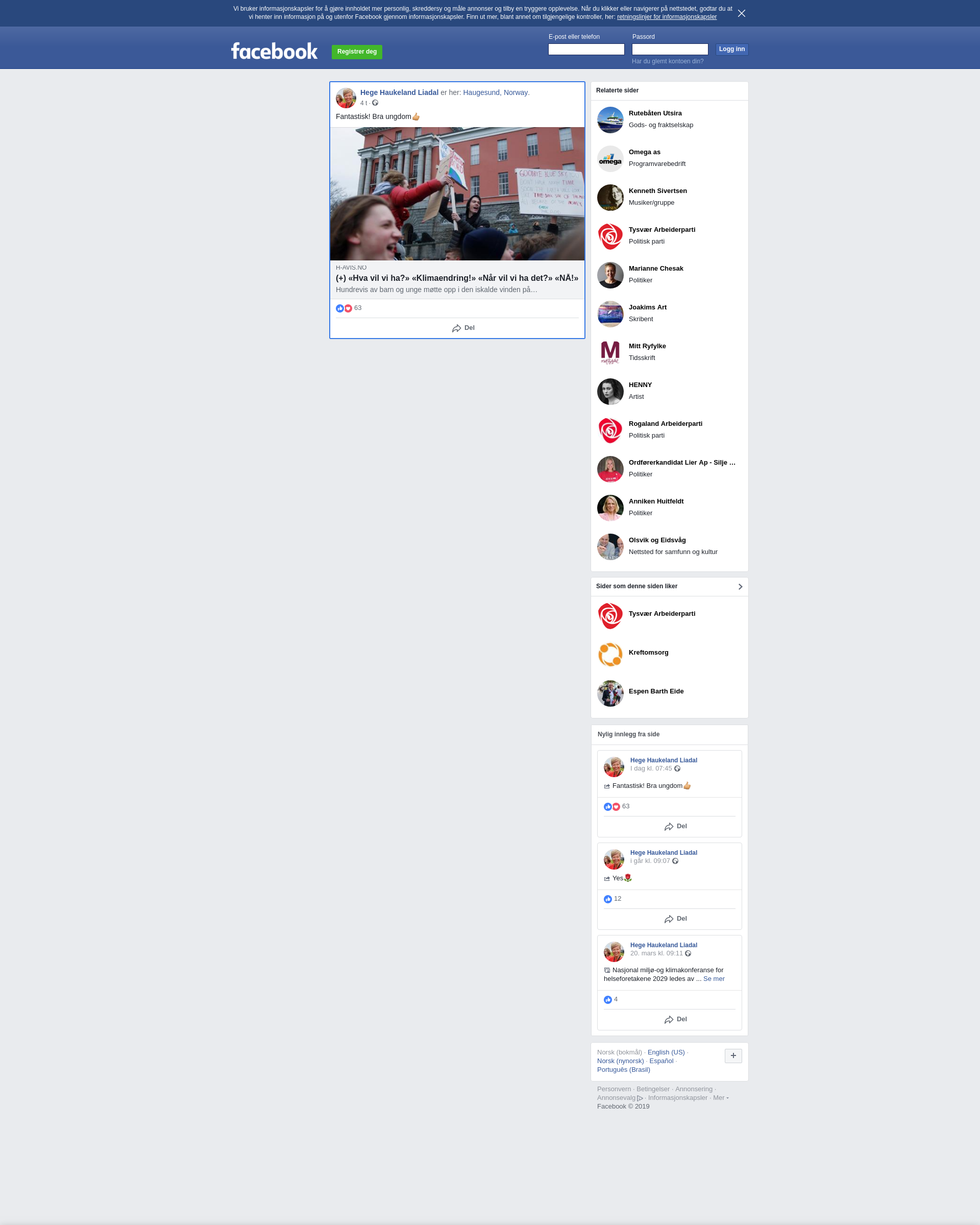 (+) «Hva vil vi ha?» «Klimaendring!» «Når vil vi ha det?» «NÅ!»