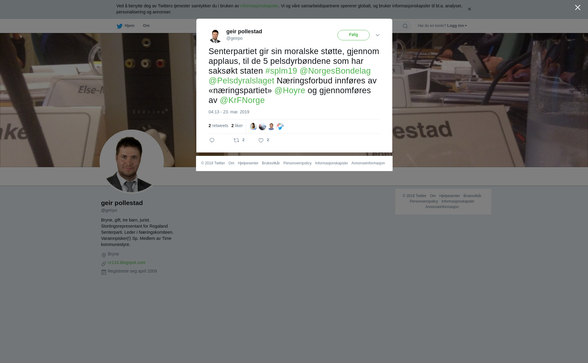 Senterpartiet gir sin moralske støtte, gjennom applaus, til de 5 pelsdyrbøndene som har saksøkt staten #splm19 @NorgesBondelag @Pelsdyralslaget Næringsforbud innføres av «næringspartiet» @Hoyre og gjennomføres av @KrFNorge