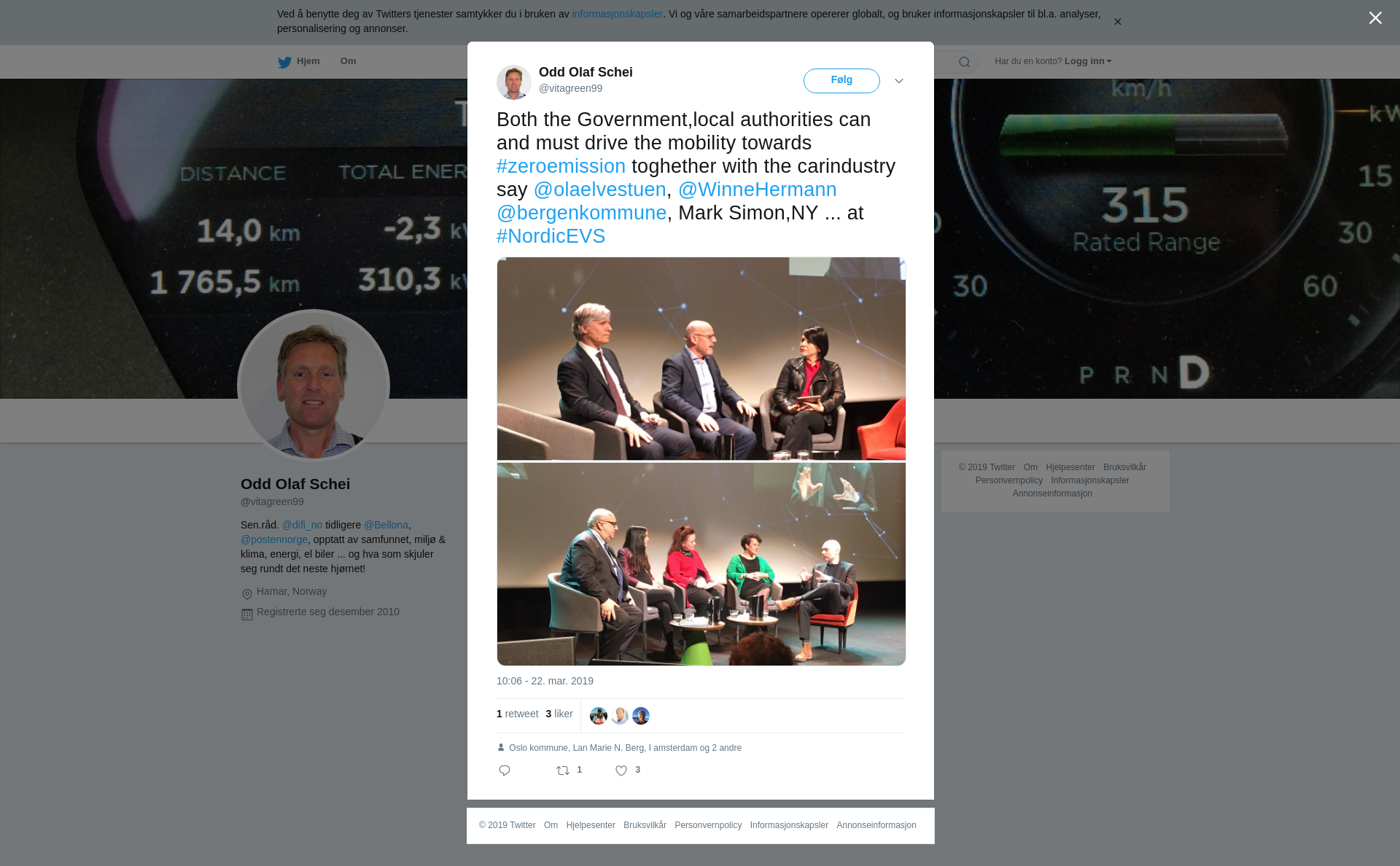 RT @vitagreen99: Both the Government,local authorities can and must drive the mobility towards #zeroemission toghether with the carindustry say @olaelvestuen, @WinneHermann @bergenkommune, Mark Simon,NY ... at #NordicEVS https://t.co/Waux23Bqcb