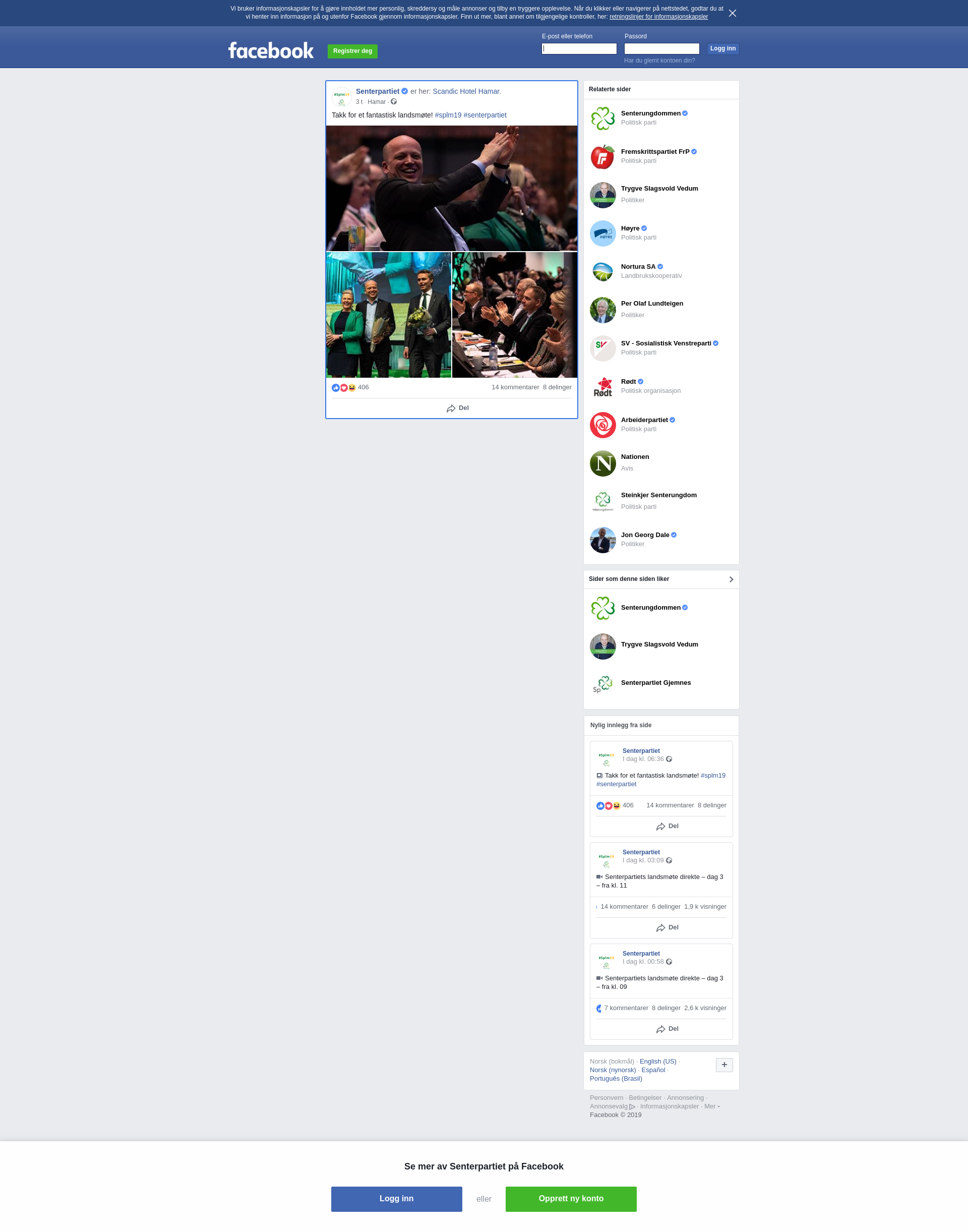 senterpartiet på Facebook