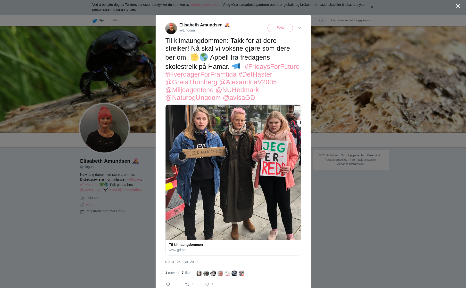 RT @Linguna: Til klimaungdommen: Takk for at dere streiker! Nå skal vi voksne gjøre som dere ber om. ✊🌎 Appell fra fredagens skolestreik på Hamar. 📣 #FridaysForFuture #HverdagerForFramtida #DetHaster @GretaThunberg @AlexandriaV2005 @Miljoagentene @NUHedmark @NaturogUngdom @avisaGD