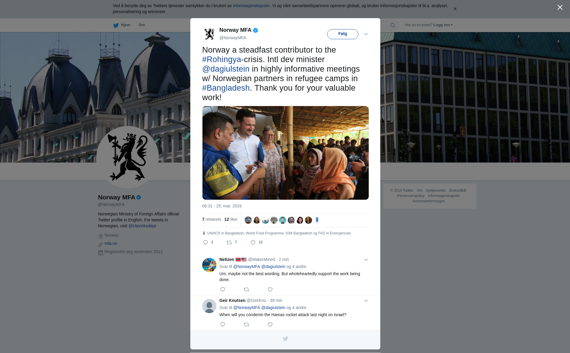 Norway a steadfast contributor to the #Rohingya-crisis. Intl dev minister @dagiulstein in highly informative meetings w/ Norwegian partners in refugee camps in #Bangladesh. Thank you for your valuable work! https://t.co/oxPRFF4t6K