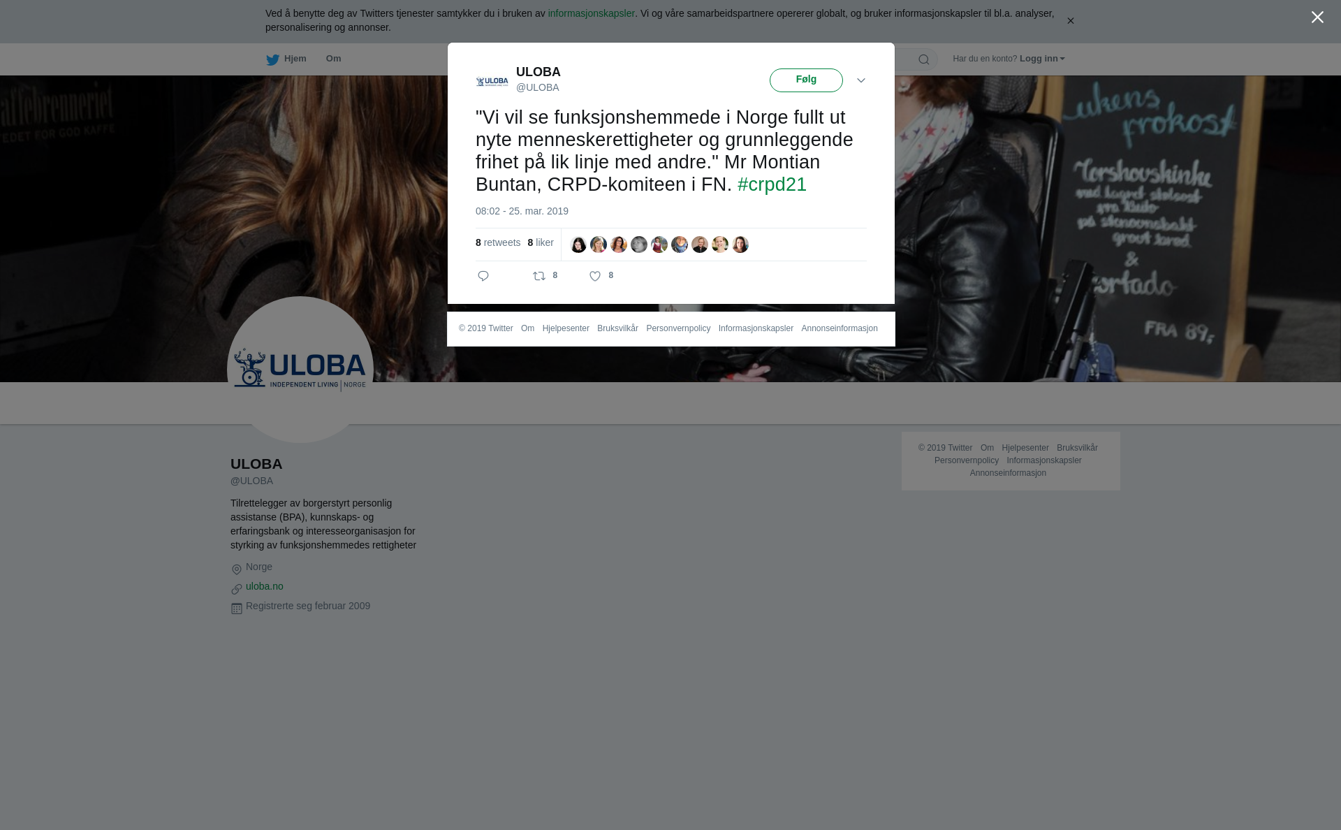 RT @ULOBA: "Vi vil se funksjonshemmede i Norge fullt ut nyte menneskerettigheter og grunnleggende frihet på lik linje med andre." Mr Montian Buntan, CRPD-komiteen i FN. #crpd21