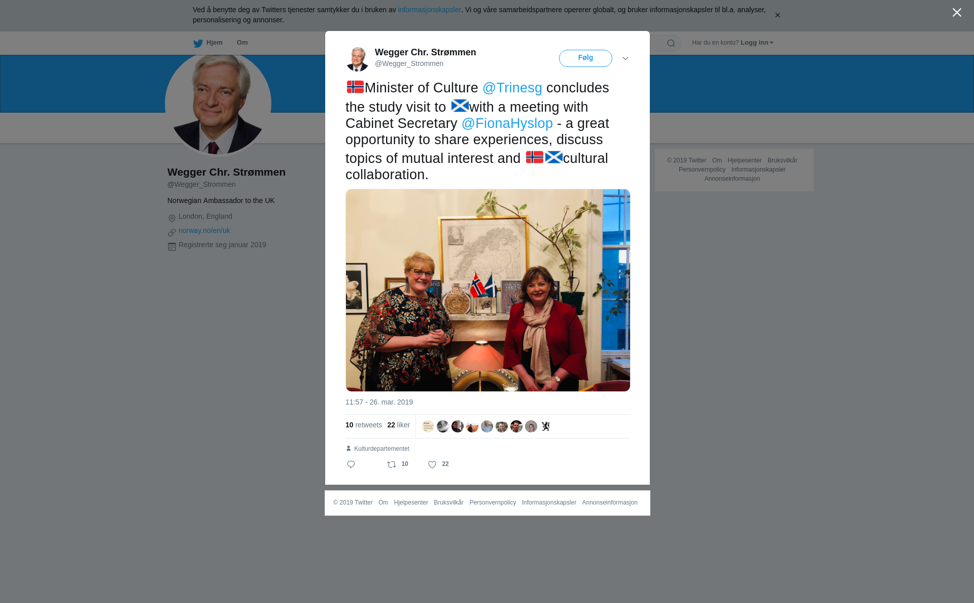 RT @Wegger_Strommen: 🇳🇴Minister of Culture @Trinesg concludes the study visit to 🏴with a meeting with Cabinet Secretary @FionaHyslop - a great opportunity to share experiences, discuss topics of mutual interest and 🇳🇴🏴cultural collaboration. https://t.co/bfI7LLtiO7