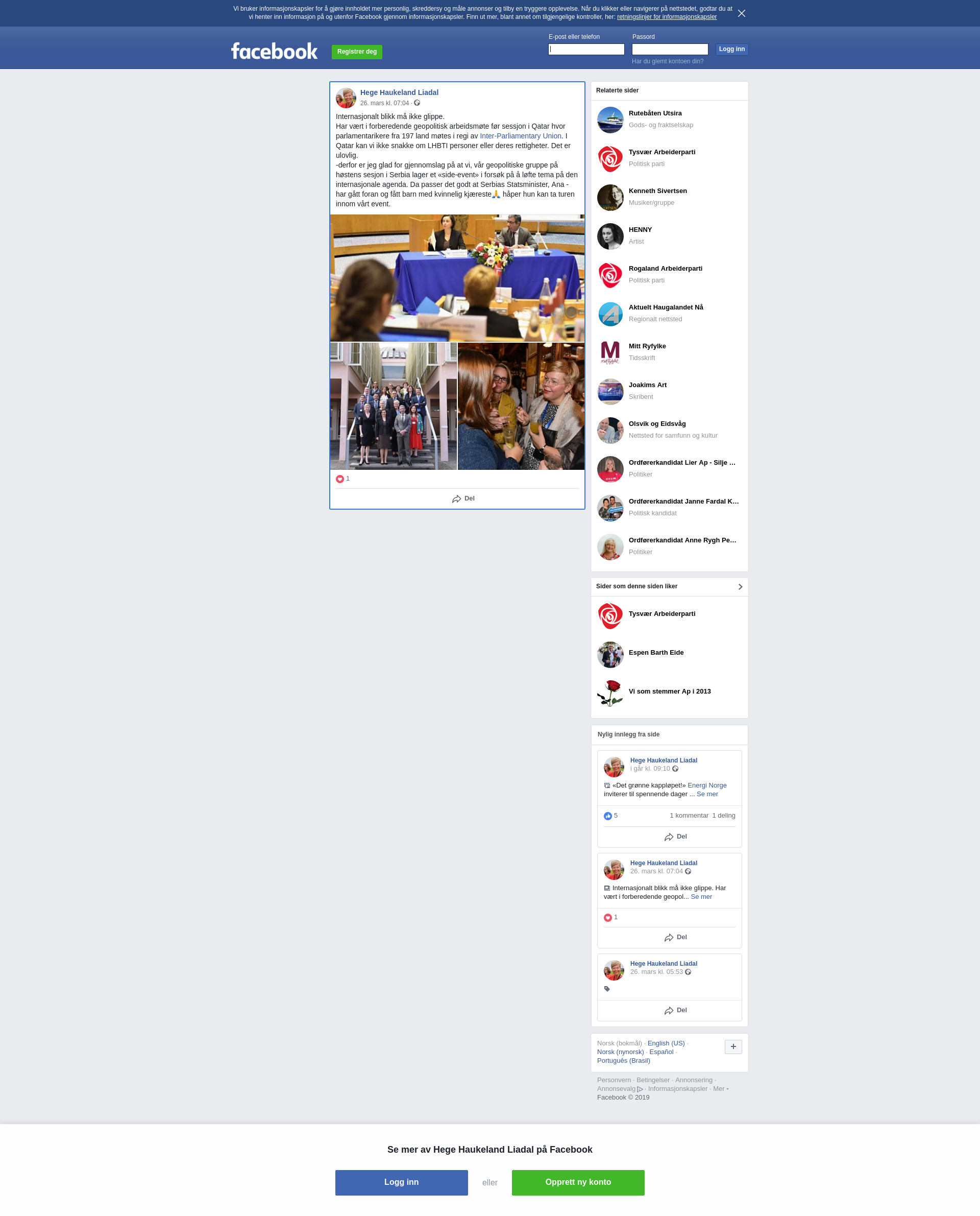 Har vært i forberedende geopolitisk arbeidsmøte før sessjon i Qatar hvor parlamentarikere fra 197 land møtes i regi av Inter-Parliamentary Union. I Qatar kan vi ikke snakke om LHBTI personer eller deres rettigheter. Det er ulovlig.