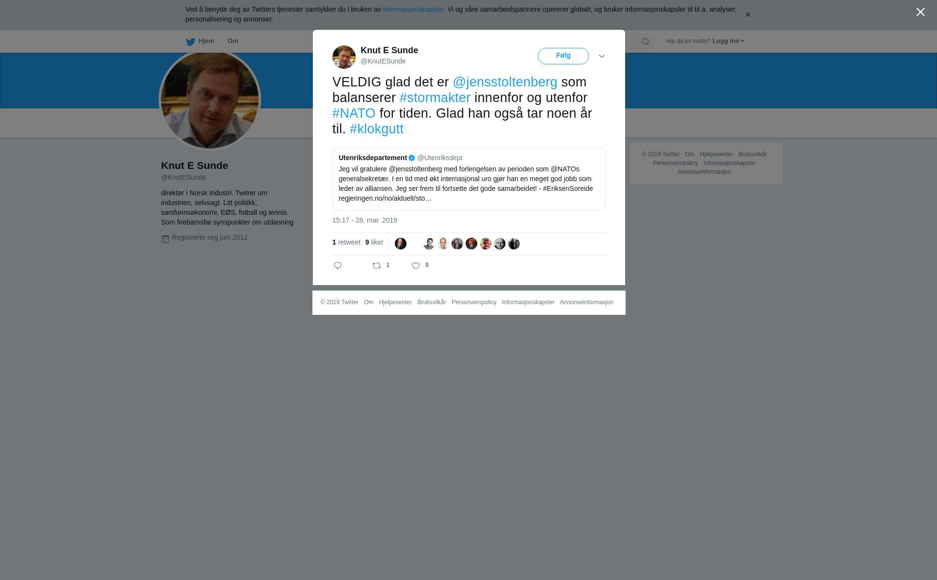 RT @KnutESunde: VELDIG glad det er @jensstoltenberg som balanserer #stormakter innenfor og utenfor #NATO for tiden. Glad han også tar noen år til. #klokgutt https://t.co/ZzPdnX00Pf