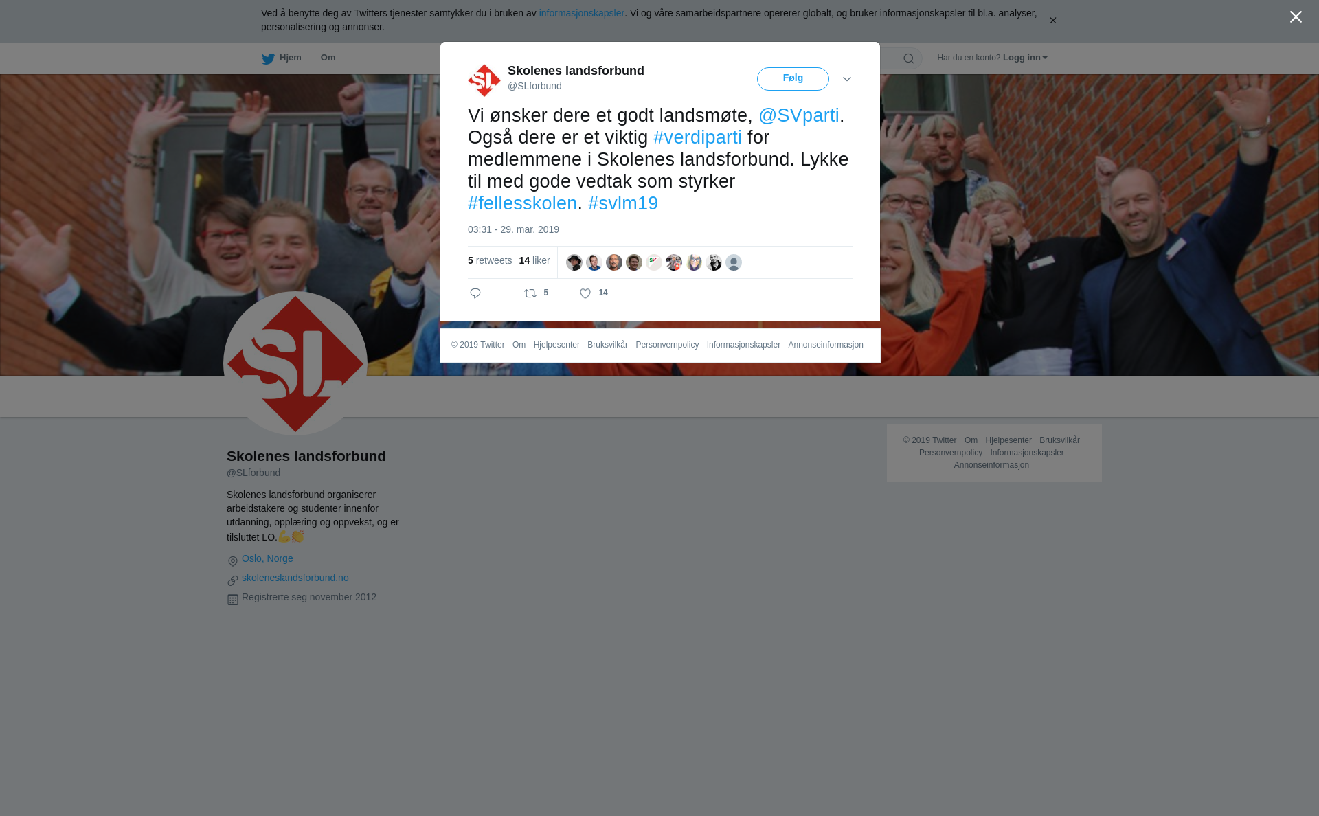 RT @SLforbund: Vi ønsker dere et godt landsmøte, @SVparti. Også dere er et viktig #verdiparti for medlemmene i Skolenes landsforbund. Lykke til med gode vedtak som styrker #fellesskolen. #svlm19