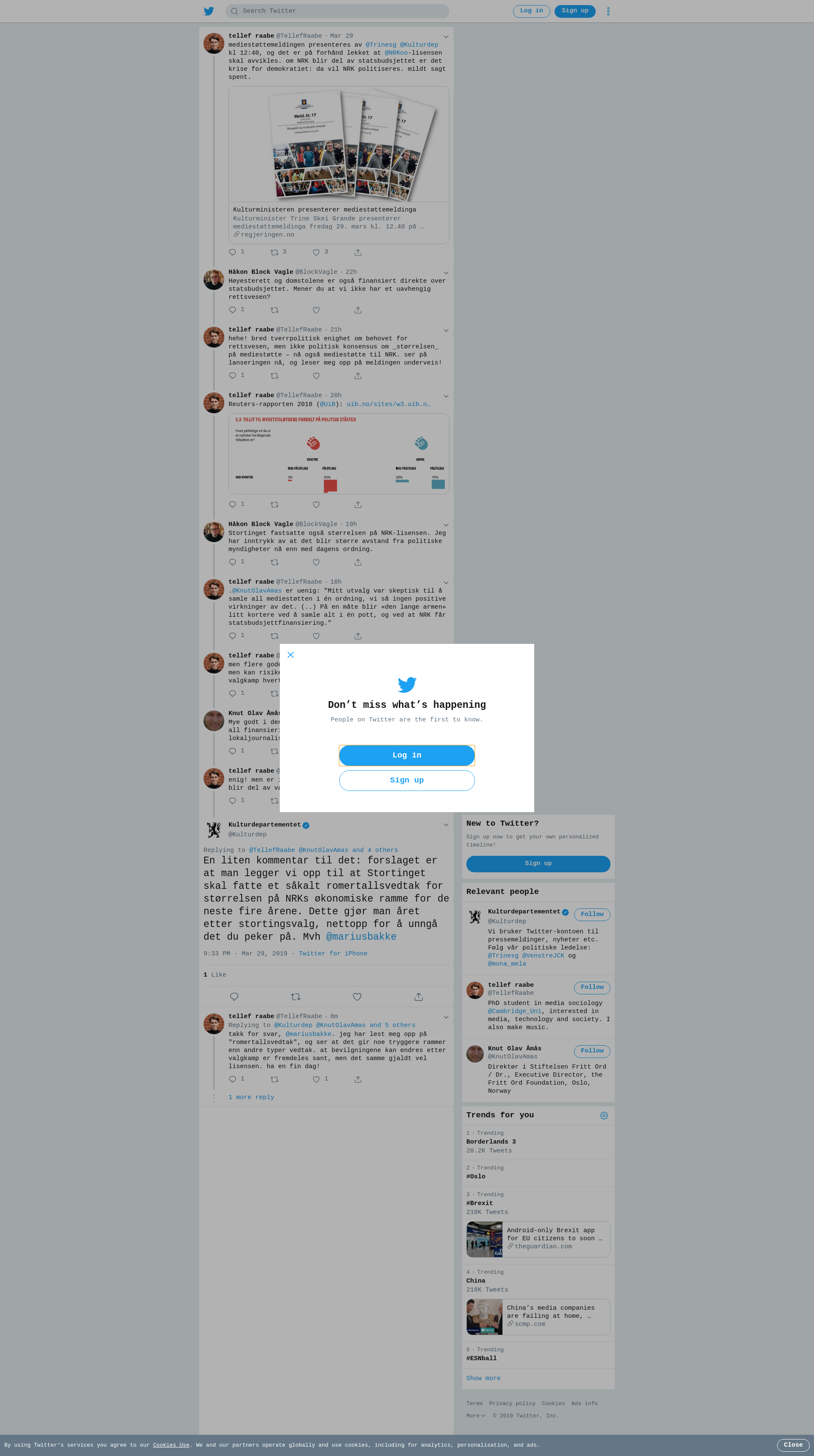 @TellefRaabe @KnutOlavAmas @BlockVagle @Trinesg @NRKno @UiB En liten kommentar til det: forslaget er at man legger vi opp til at Stortinget skal fatte et såkalt romertallsvedtak for størrelsen på NRKs økonomiske ramme for de neste fire årene. Dette gjør man året etter stortingsvalg, nettopp for å unngå det du peker på. Mvh @mariusbakke