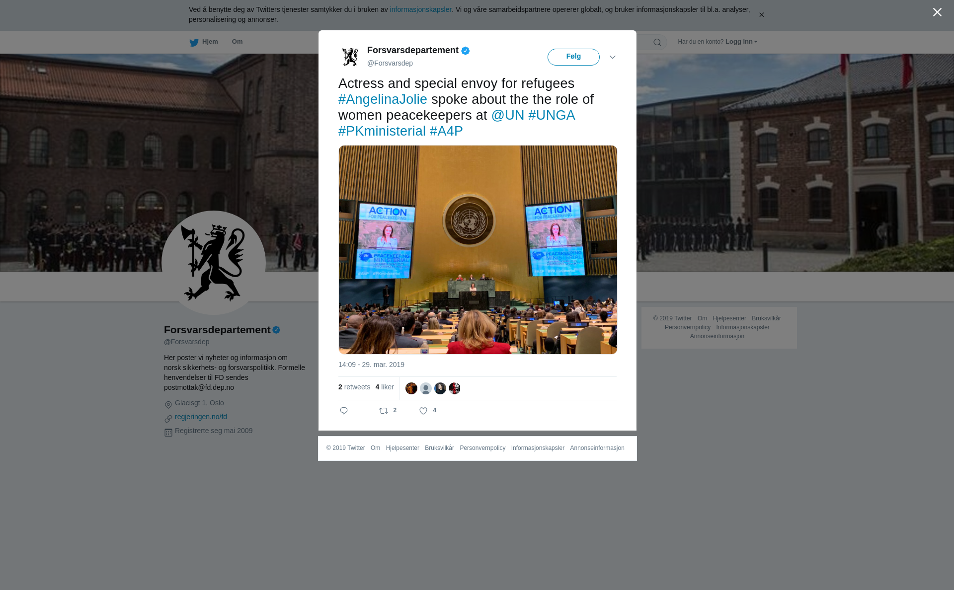Actress and special envoy for refugees #AngelinaJolie spoke about the the role of women peacekeepers at @UN #UNGA #PKministerial #A4P https://t.co/DoXQCb0uXI