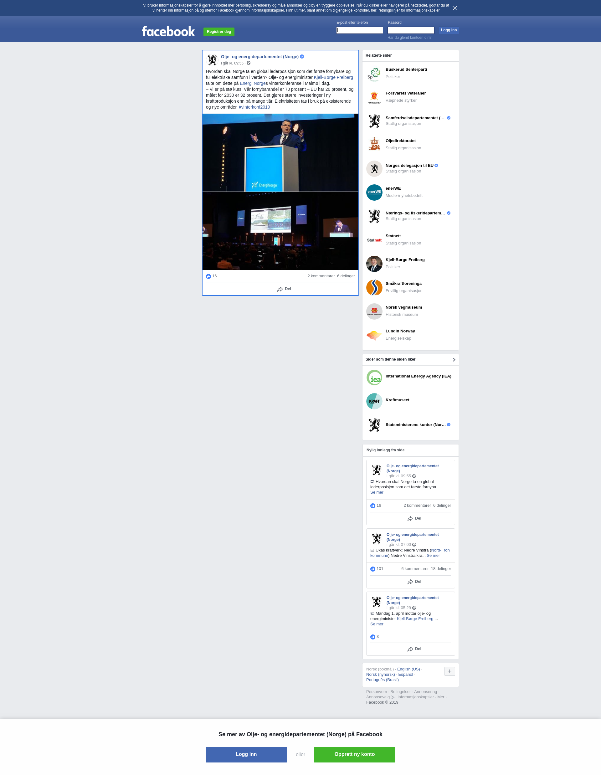 – Vi er på stø kurs. Vår fornybarandel er 70 prosent – EU har 20 prosent, og målet for 2030 er 32 prosent. Det gjøres større investeringer i ny kraftproduksjon enn på mange tiår. Elektrisiteten tas i bruk på eksisterende og nye områder. #vinterkonf2019