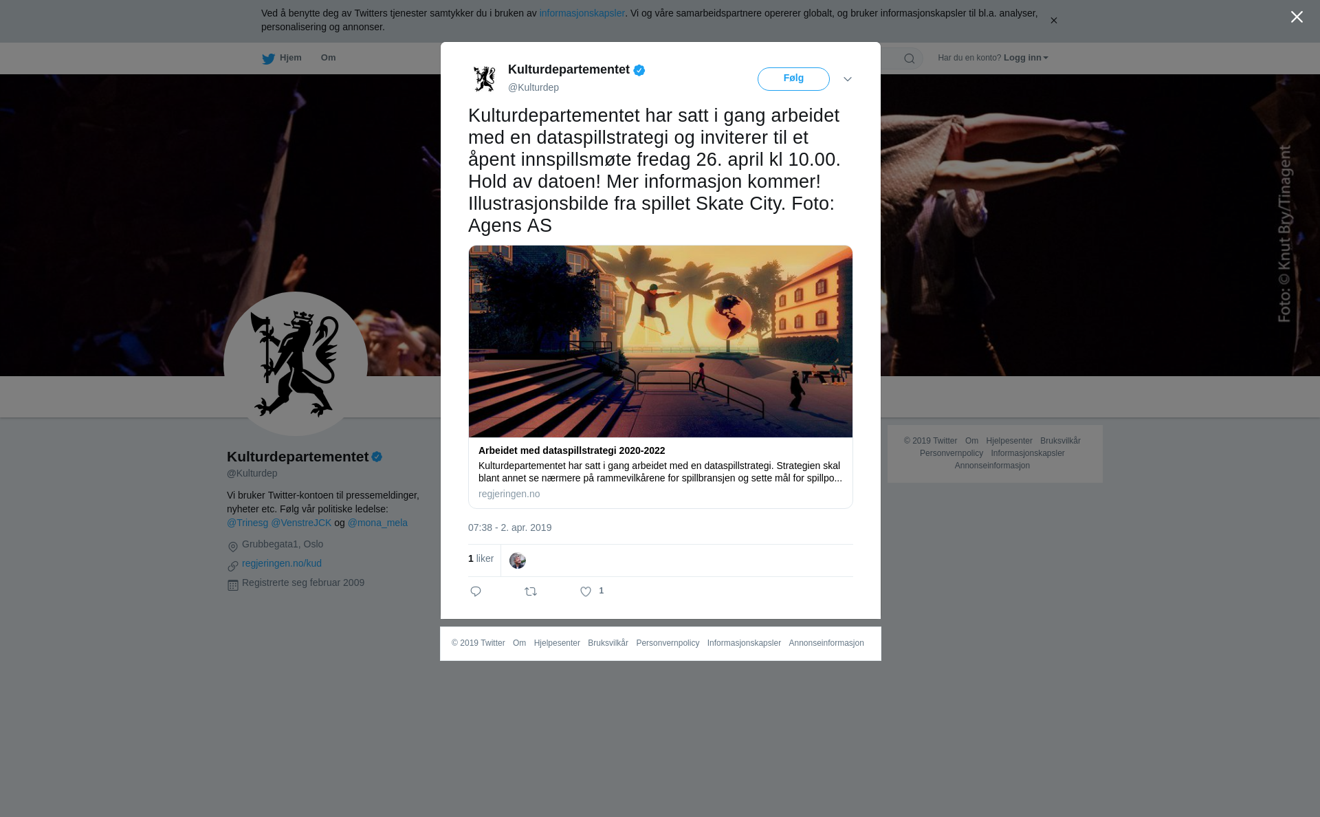 Kulturdepartementet har satt i gang arbeidet med en dataspillstrategi og inviterer til et åpent innspillsmøte fredag 26. april kl 10.00. Hold av datoen! Mer informasjon kommer!