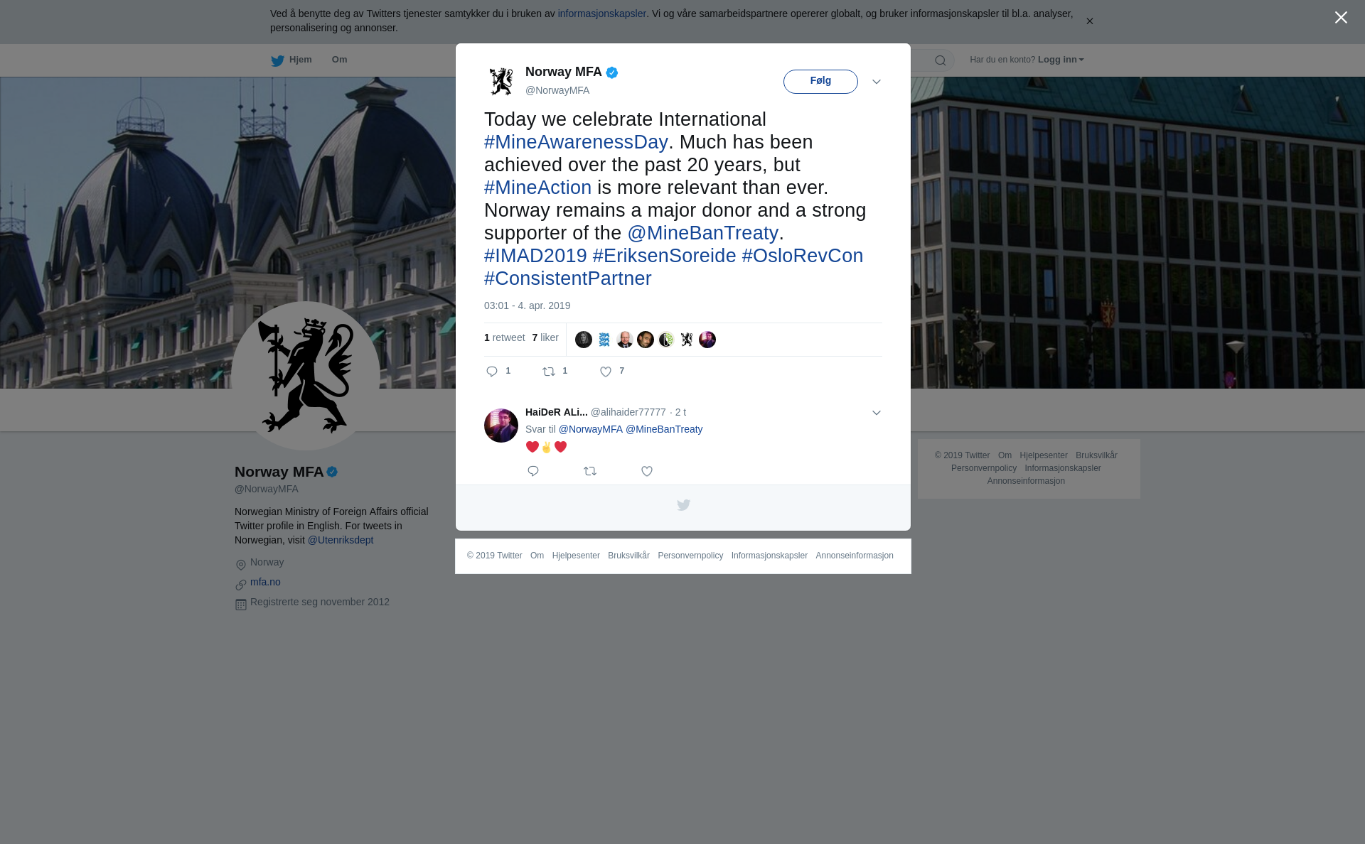 Today we celebrate International #MineAwarenessDay. Much has been achieved over the past 20 years, but #MineAction is more relevant than ever. Norway remains a major donor and a strong supporter of the @MineBanTreaty. #IMAD2019 #EriksenSoreide #OsloRevCon #ConsistentPartner