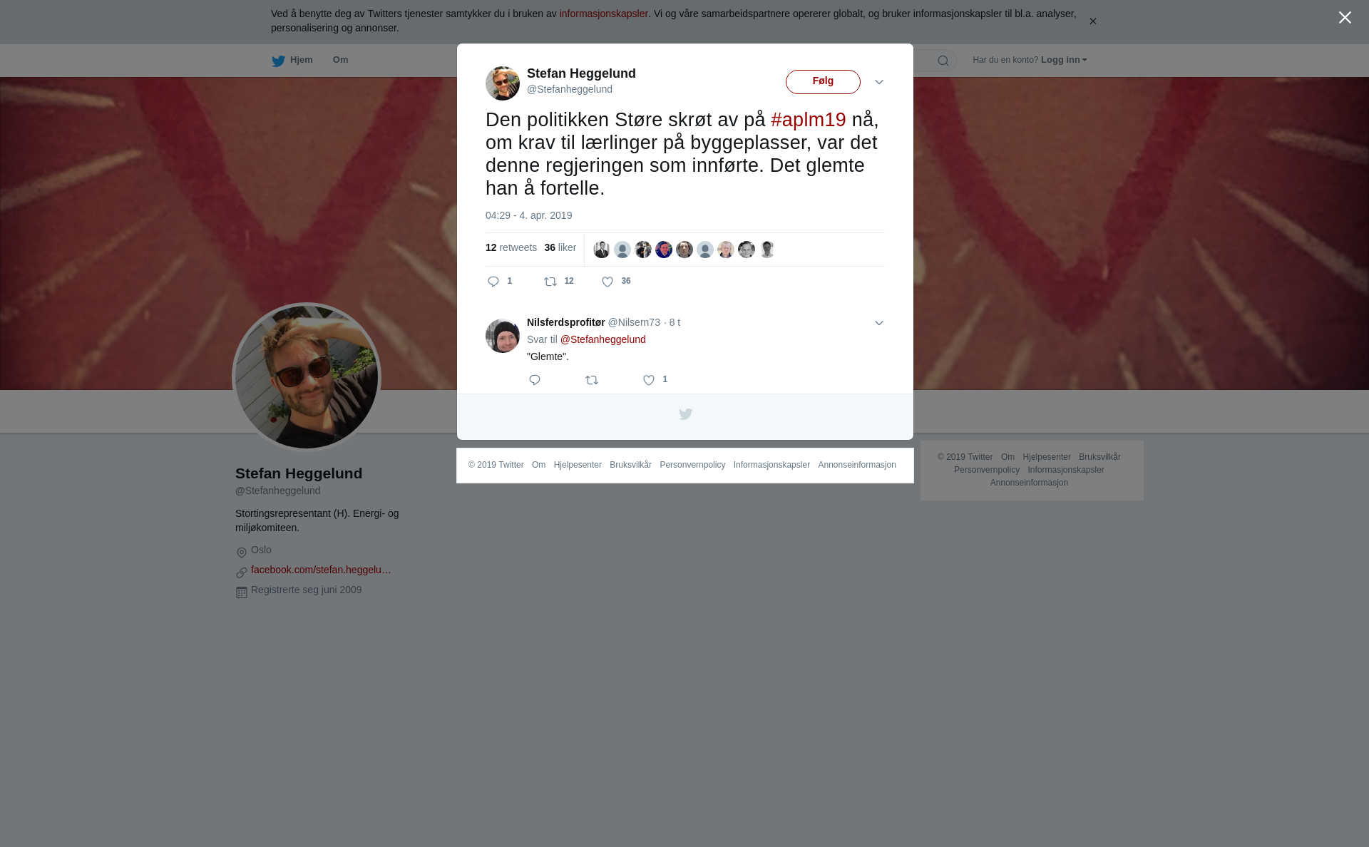 RT @Stefanheggelund: Den politikken Støre skrøt av på #aplm19 nå, om krav til lærlinger på byggeplasser, var det denne regjeringen som innførte. Det glemte han å fortelle.