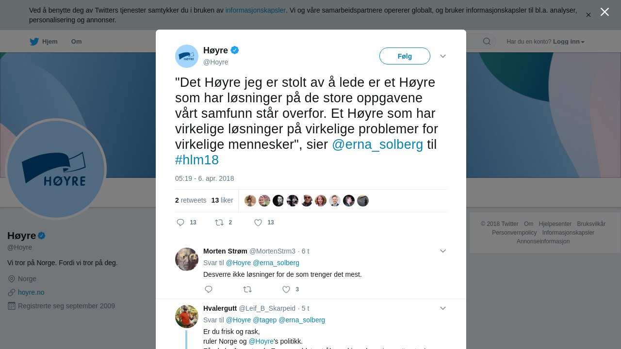 "Det Høyre jeg er stolt av å lede er et Høyre som har løsninger på de store oppgavene vårt samfunn står overfor. Et Høyre som har virkelige løsninger på virkelige problemer for virkelige mennesker", sier @erna_solberg til #hlm18