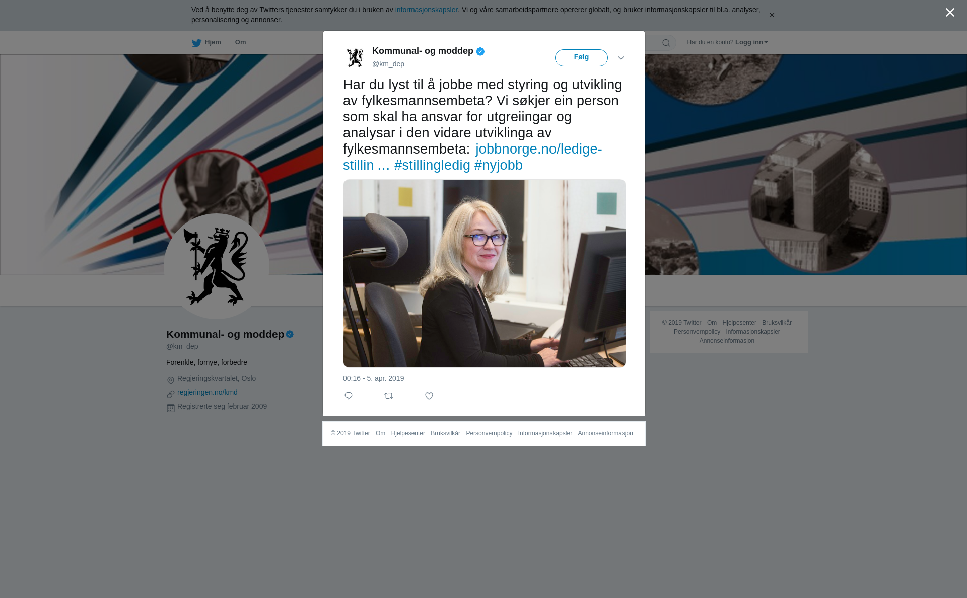 Har du lyst til å jobbe med styring og utvikling av fylkesmannsembeta? Vi søkjer ein person som skal ha ansvar for utgreiingar og analysar i den vidare utviklinga av fylkesmannsembeta: https://t.co/HuQgRaLwLW #stillingledig #nyjobb https://t.co/U27OxSeThz