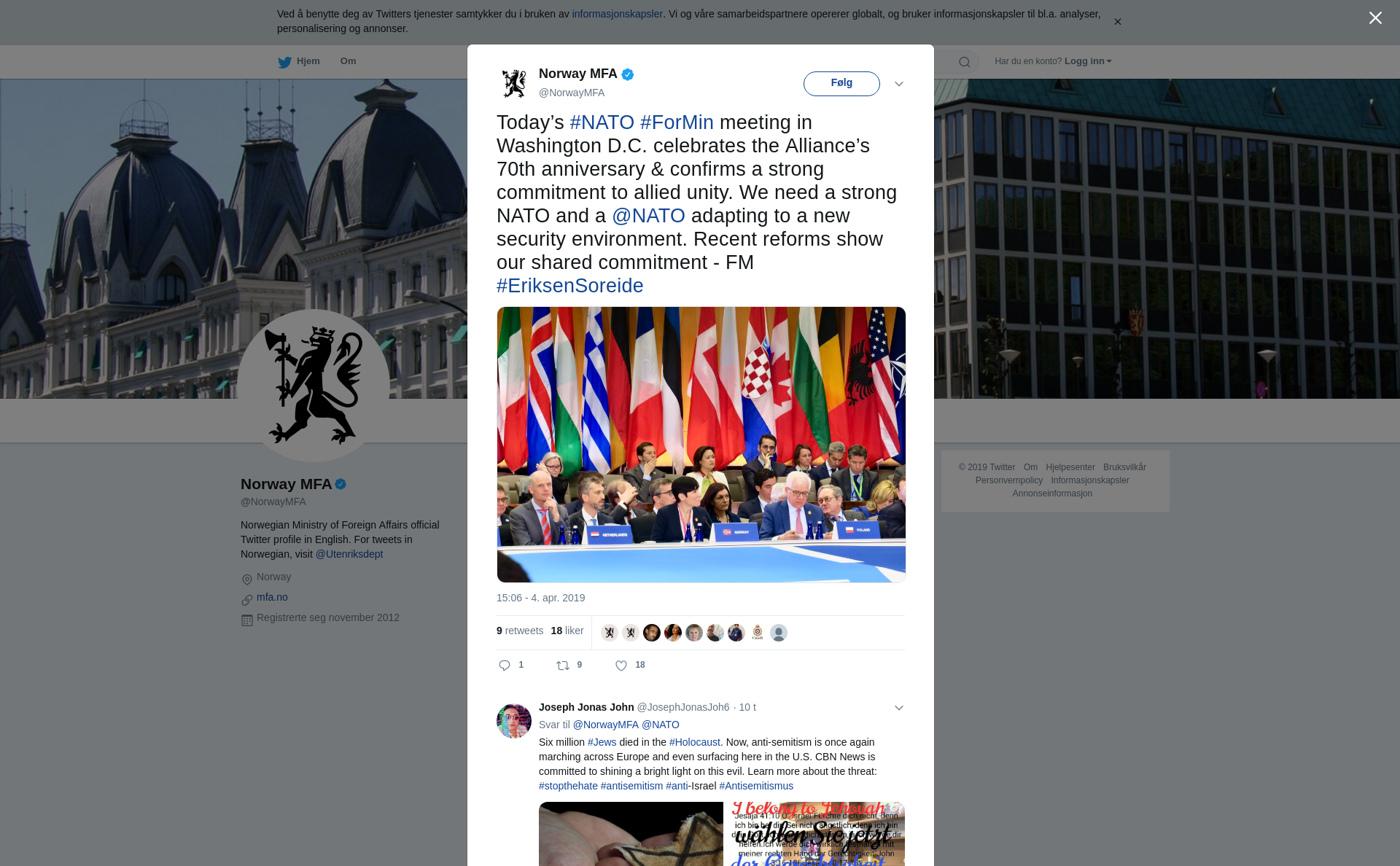 Today’s #NATO #ForMin meeting in Washington D.C. celebrates the Alliance’s 70th anniversary & confirms a strong commitment to allied unity. We need a strong NATO and a @NATO adapting to a new security environment. Recent reforms show our shared commitment - FM #EriksenSoreide https://t.co/TbezGKhnGr
