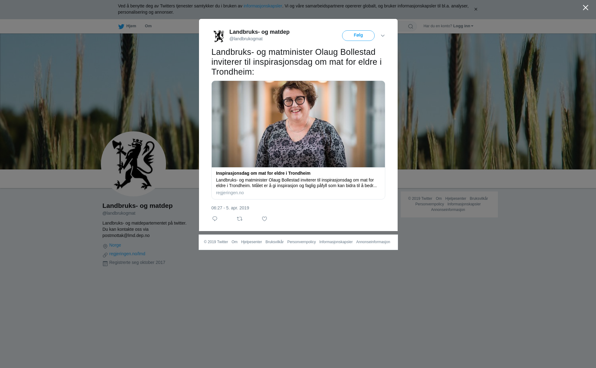 Landbruks- og matminister Olaug Bollestad inviterer til inspirasjonsdag om mat for eldre i Trondheim. Målet er å gi inspirasjon og faglig påfyll som kan bidra til å bedre mattilbudet for eldre.