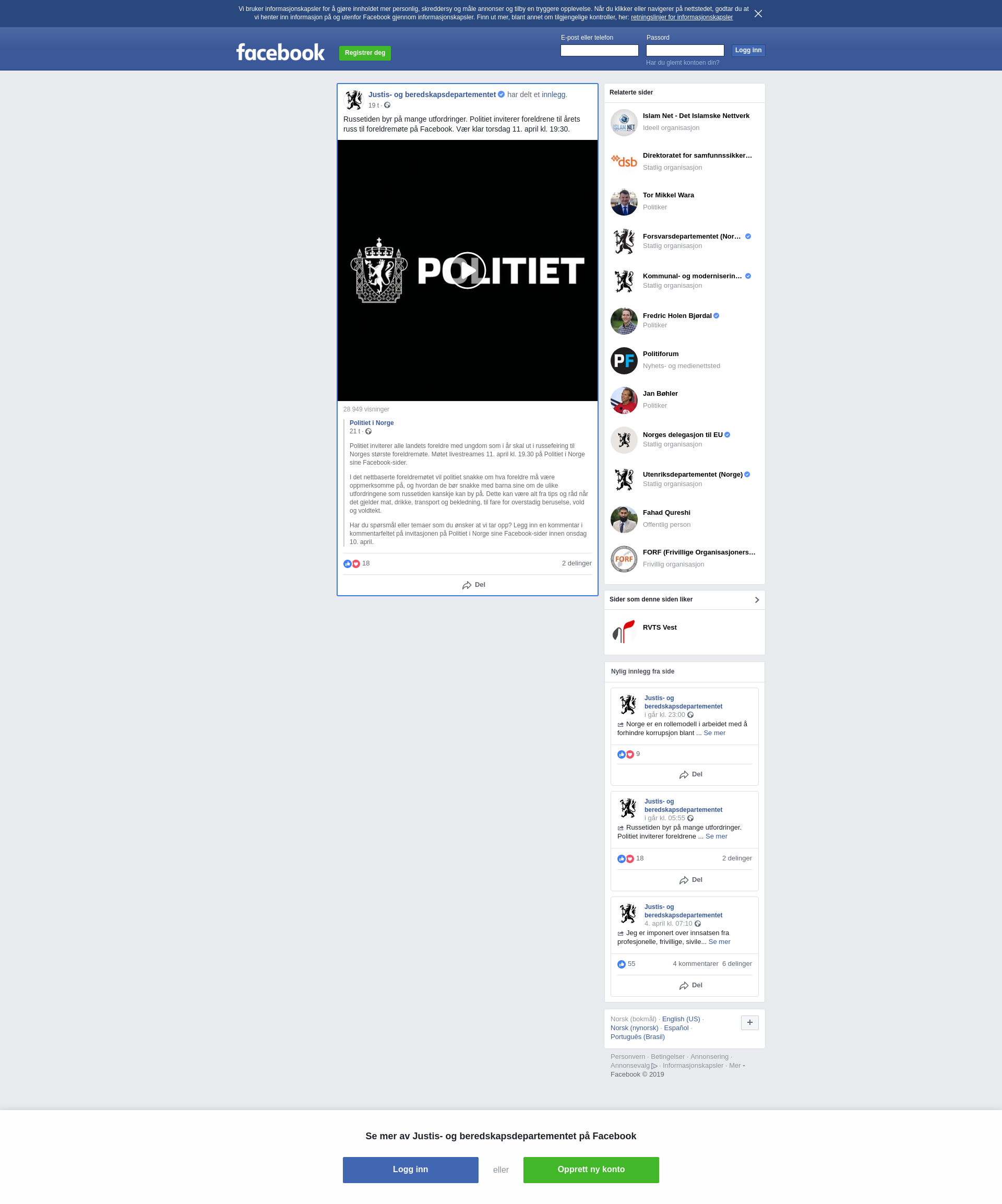 Har du spørsmål eller temaer som du ønsker at vi tar opp? Legg inn en kommentar i kommentarfeltet på invitasjonen på Politiet i Norge sine Facebook-sider innen onsdag 10. april.